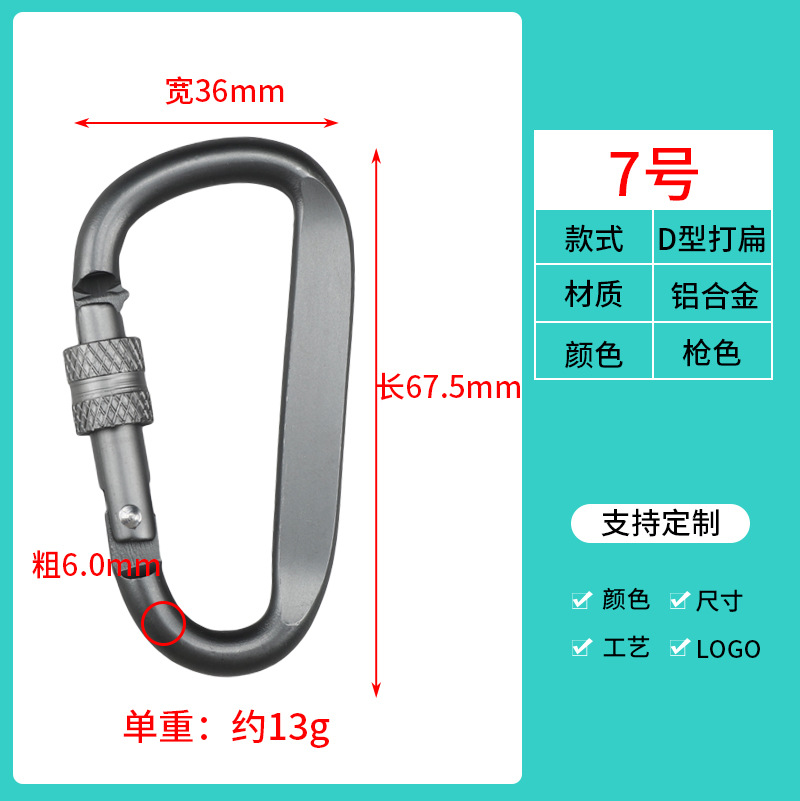 도매 잠금 D 형 플랫 건 컬러 카라비너 ​​너트 버클 건 컬러 걸이 버클 후크 알루미늄 합금 야외 배낭 버클 후크