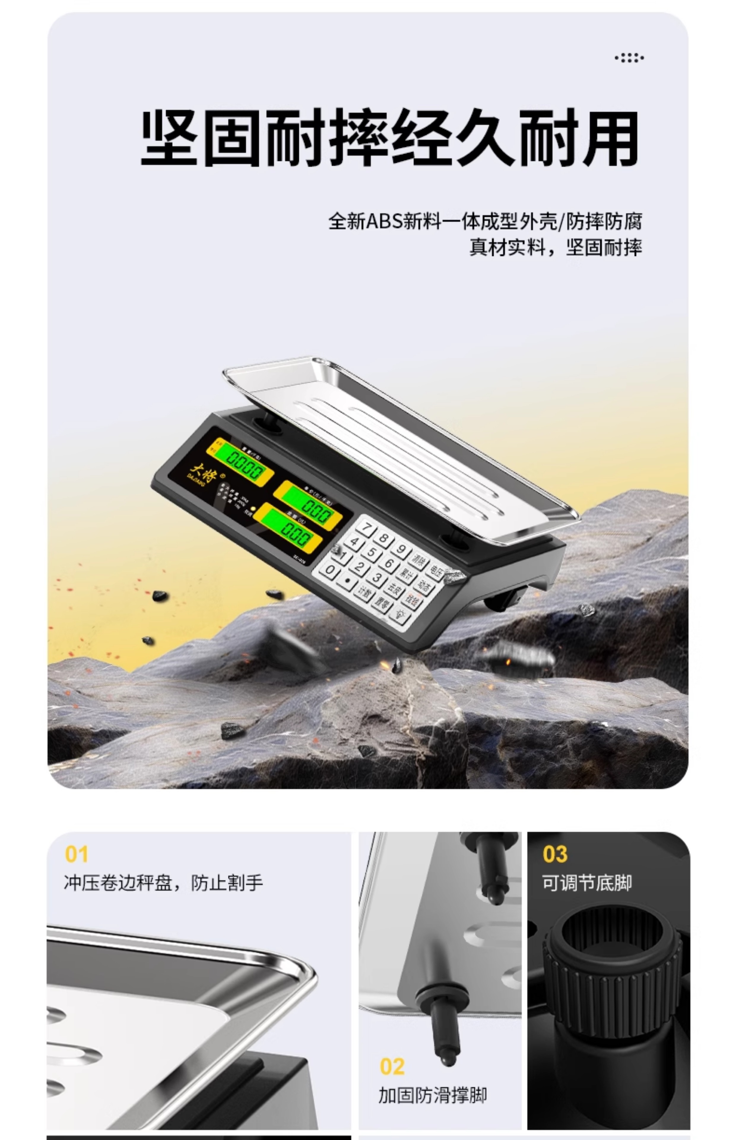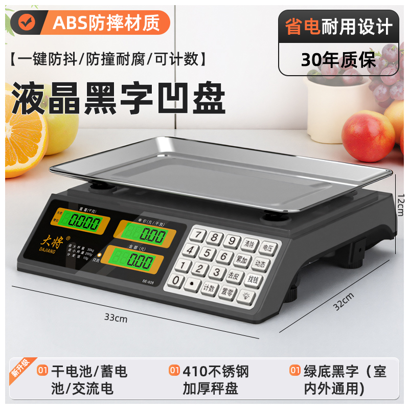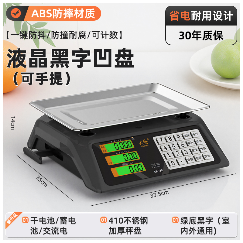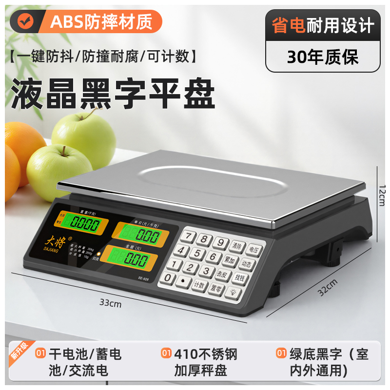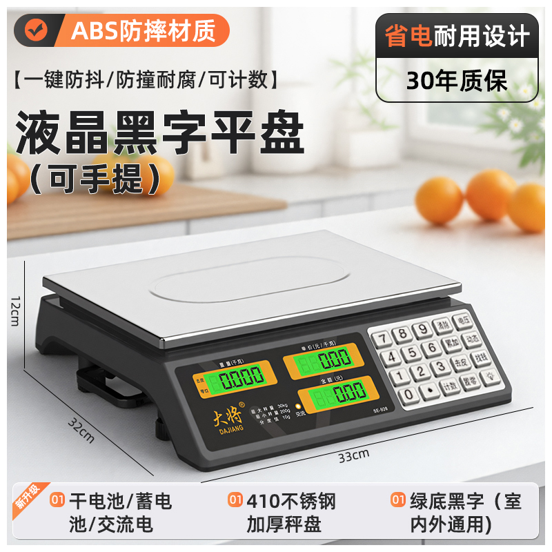 • 새로운 30kg 배터리 내구성(3회 충전식) 검정색 문자 평판 계산