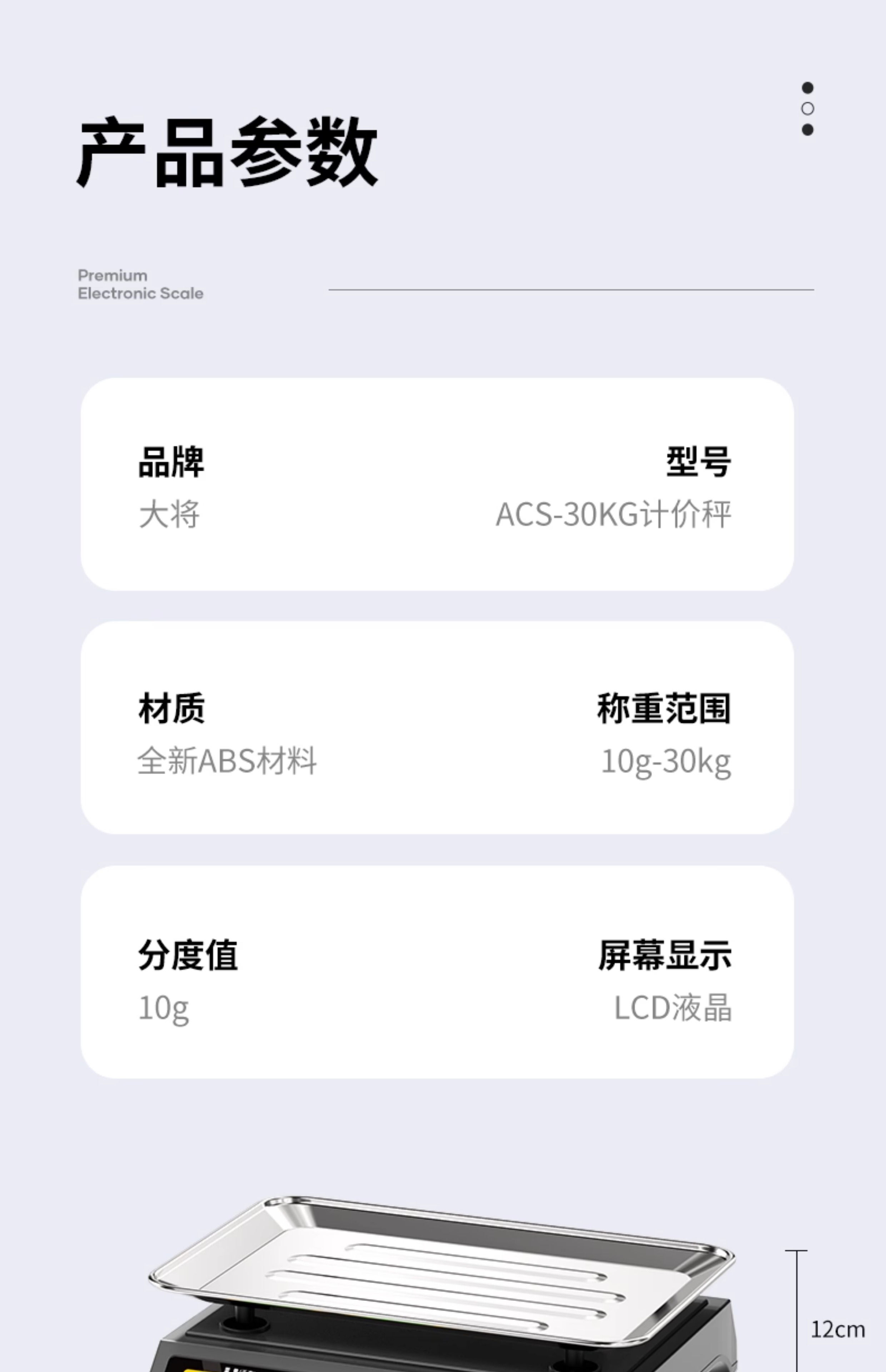 전자 저울 상업용 소형 전자 저울 고정밀 30kg 스케일 과일 및 야채 판매 가정용 저울