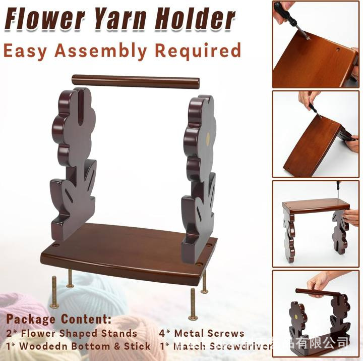 나무 스풀 랙 데스크탑 손으로 짠 양모 랙 꽃 모양의 원사 보관 랙 가정용 회전식 양모 공 랙