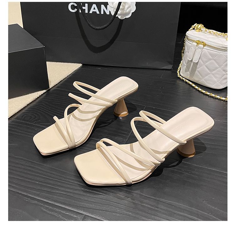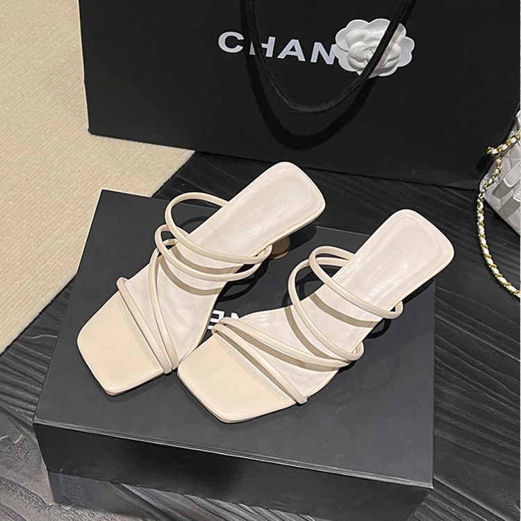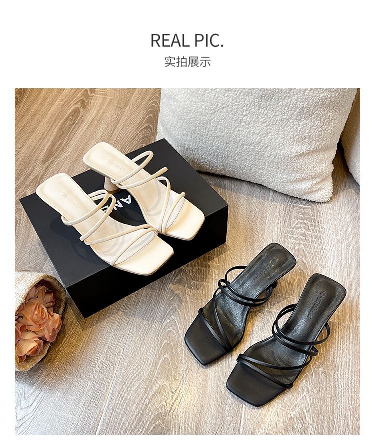 재고 있음] 여성용 로우힐 샌들 2024 여름 신상 샌들 다용도 아우터 페어리 스타일 슬리퍼 블랙스토어 가기