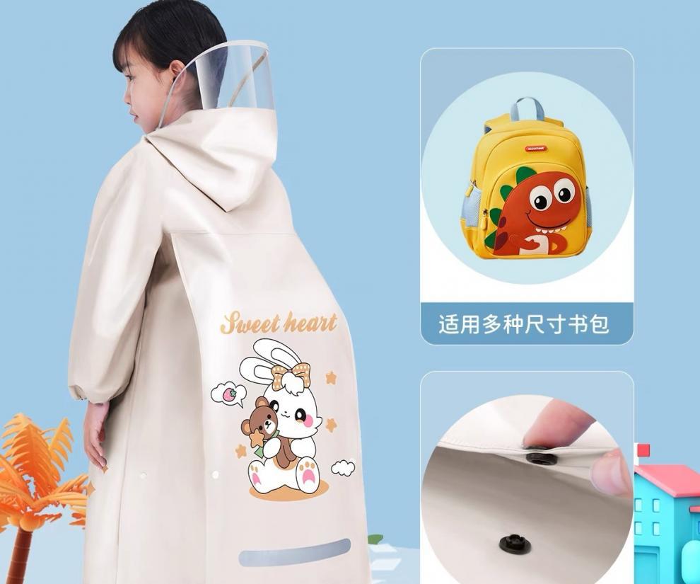 어린이 비옷 세트 초등 및 중등 학생 유치원을위한 학교 가방이있는 새로운 두꺼운 대형 챙 전신 원피스 판초스토어 가기