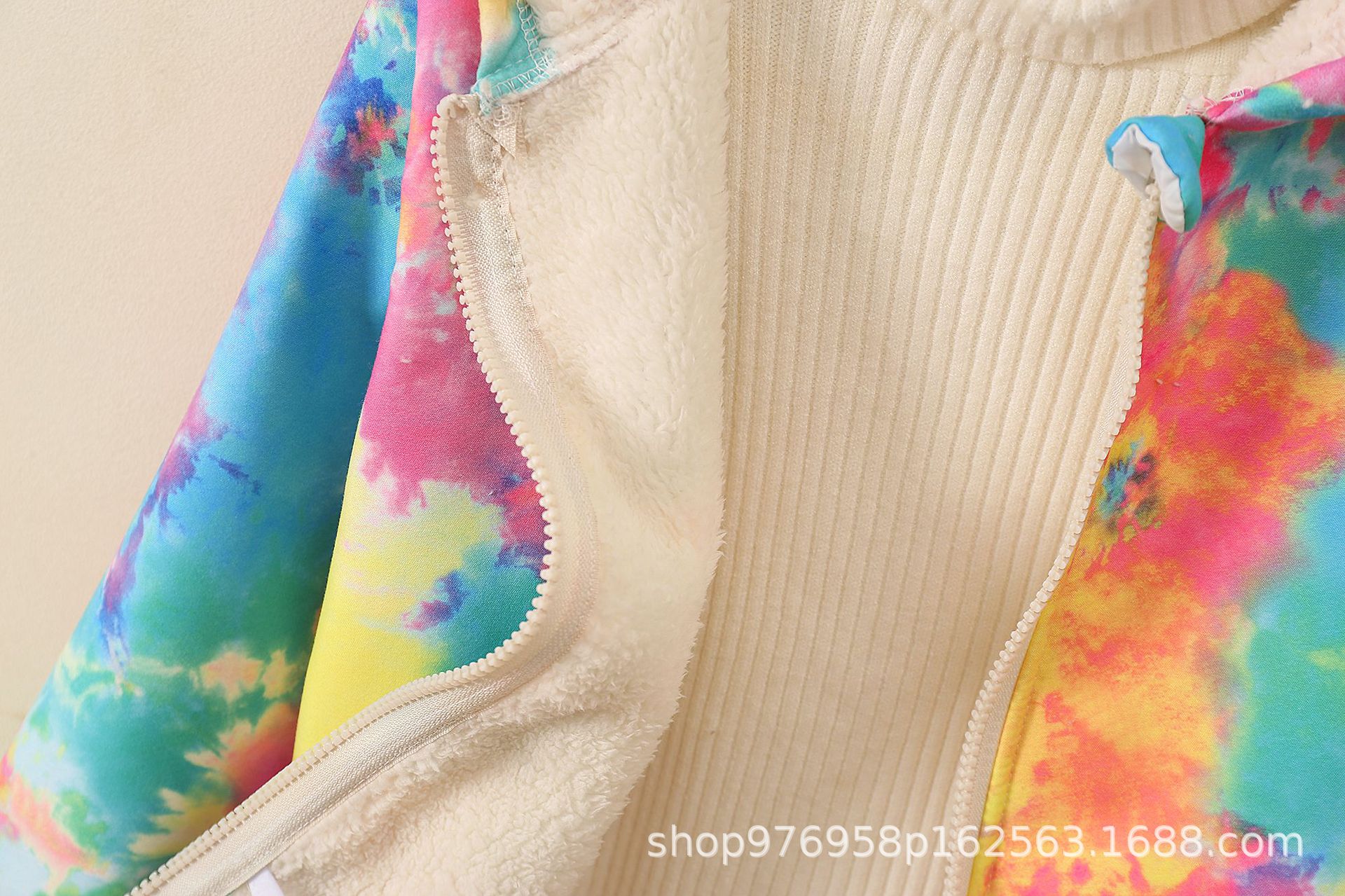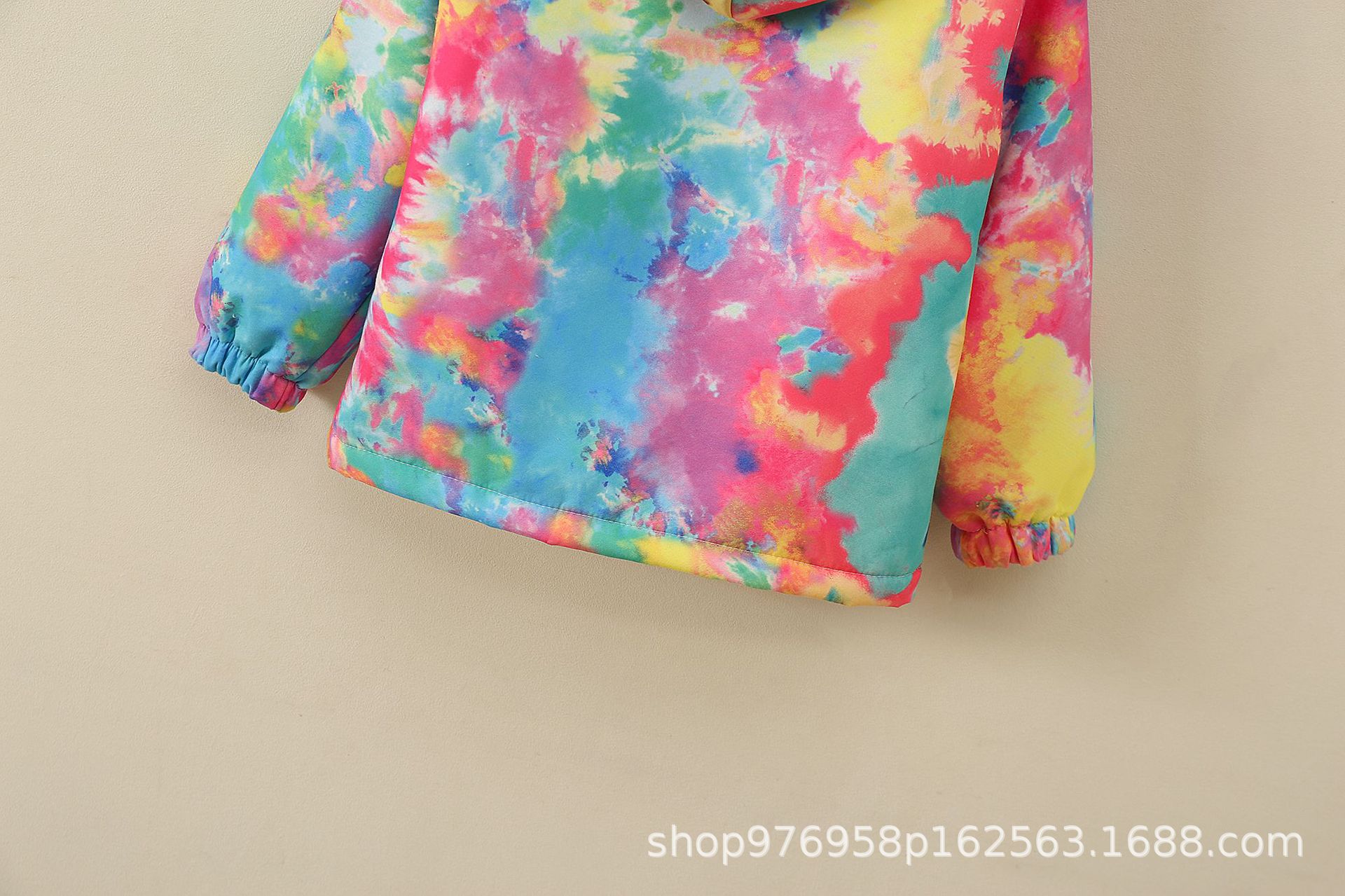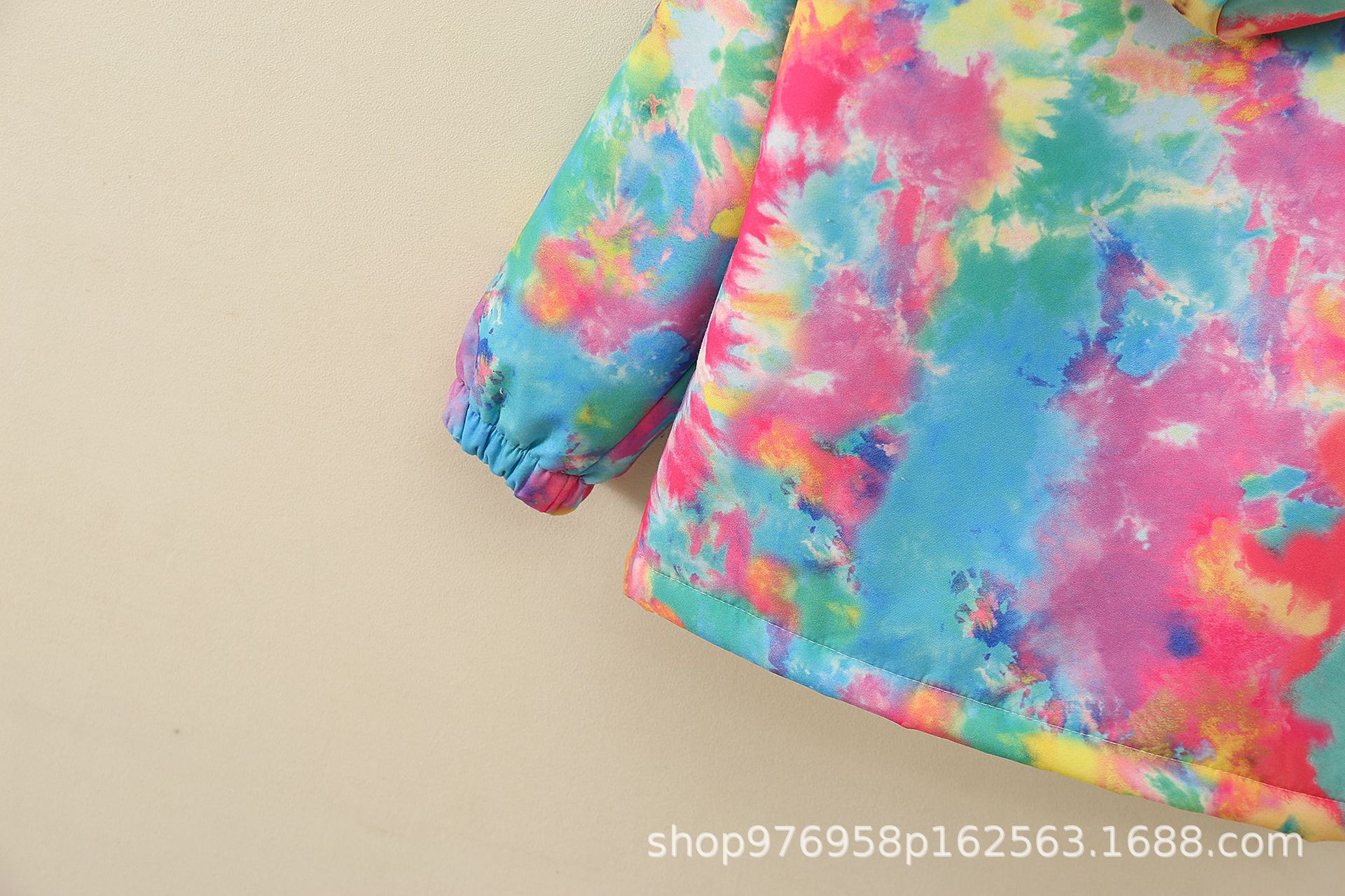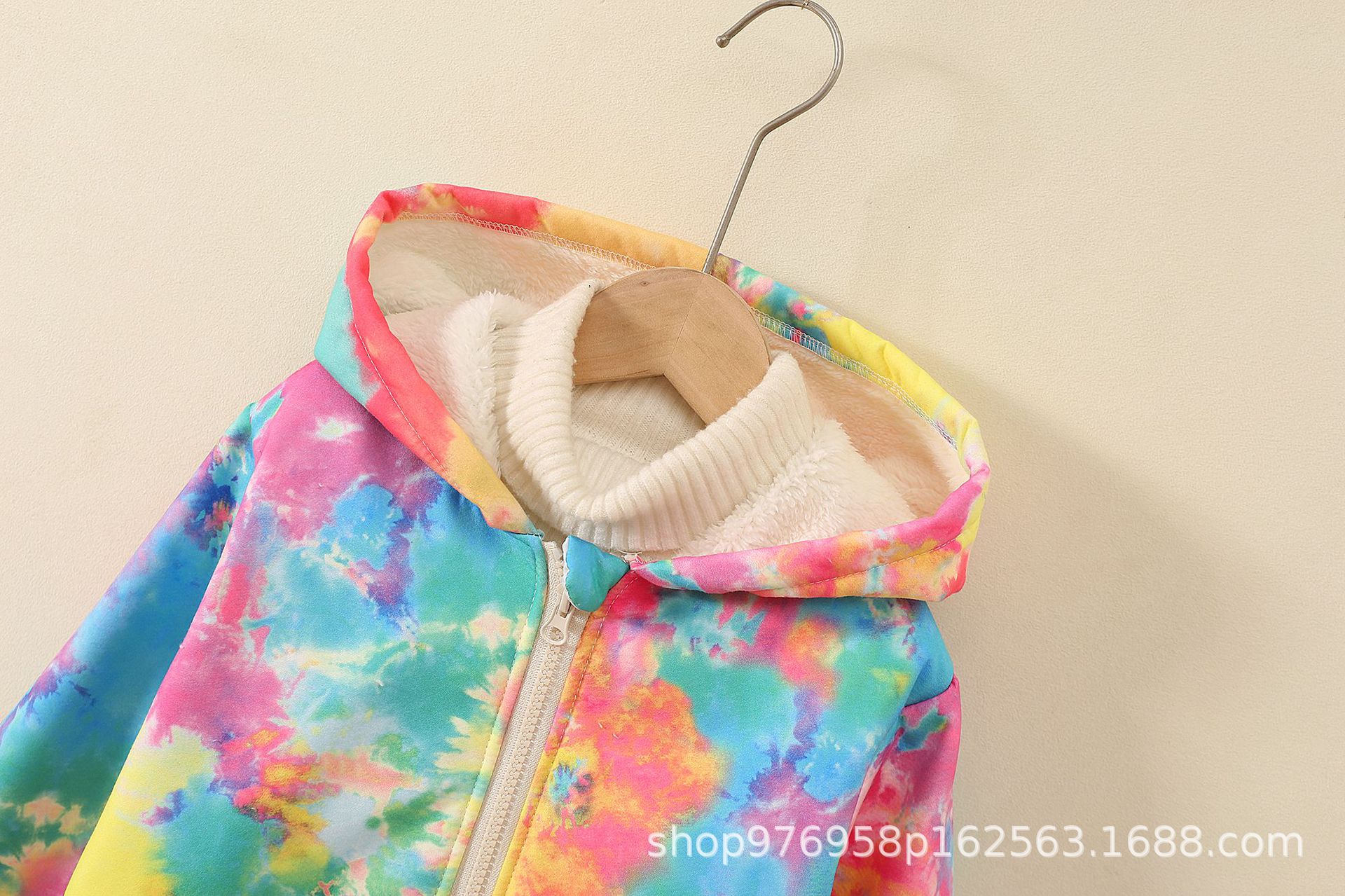국경 간 어린이 새로운 가을 스타일 소녀 재킷, 중소 어린이 벨벳 패션 후드 타이 염색 중간 길이 재킷
