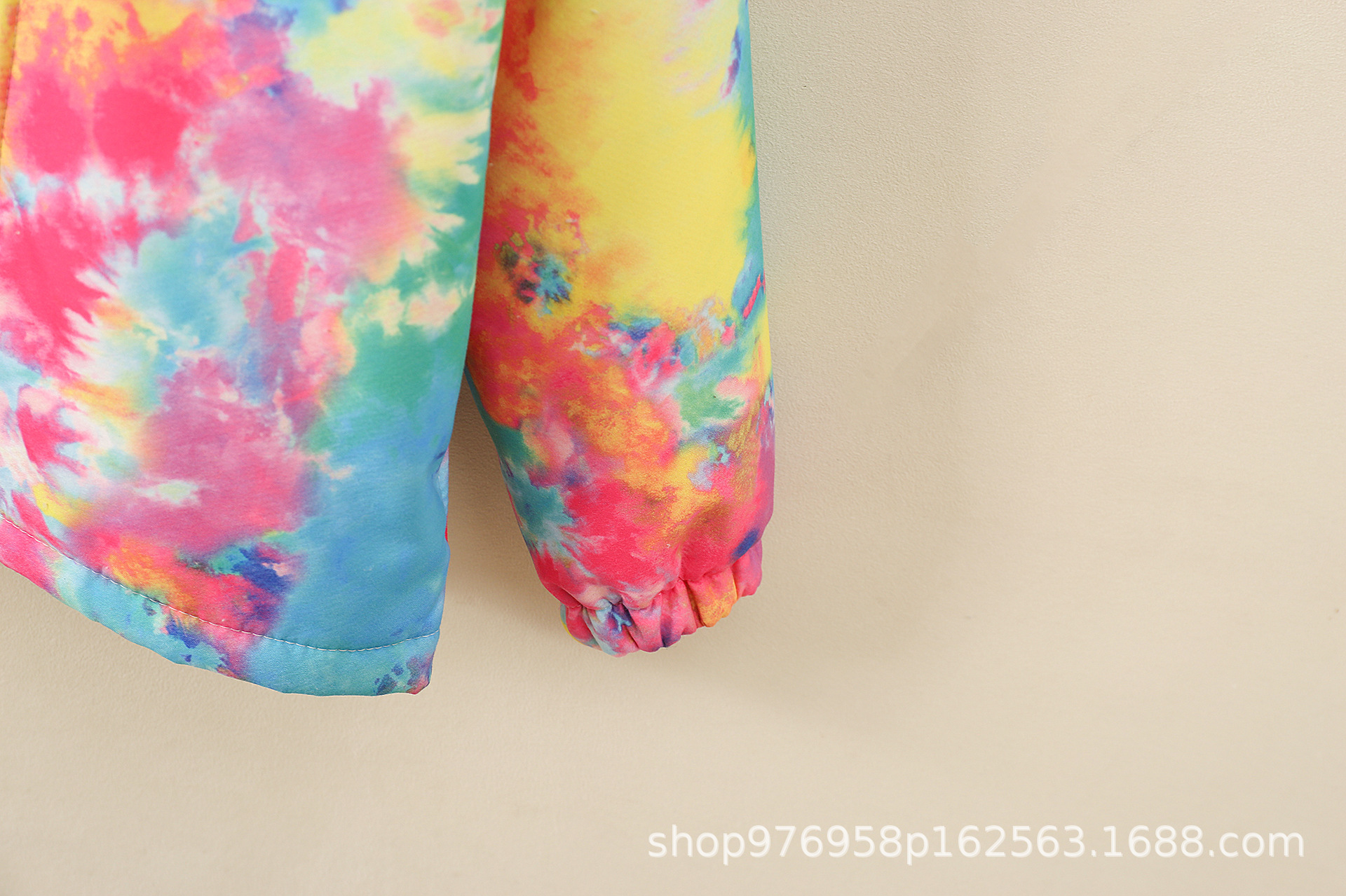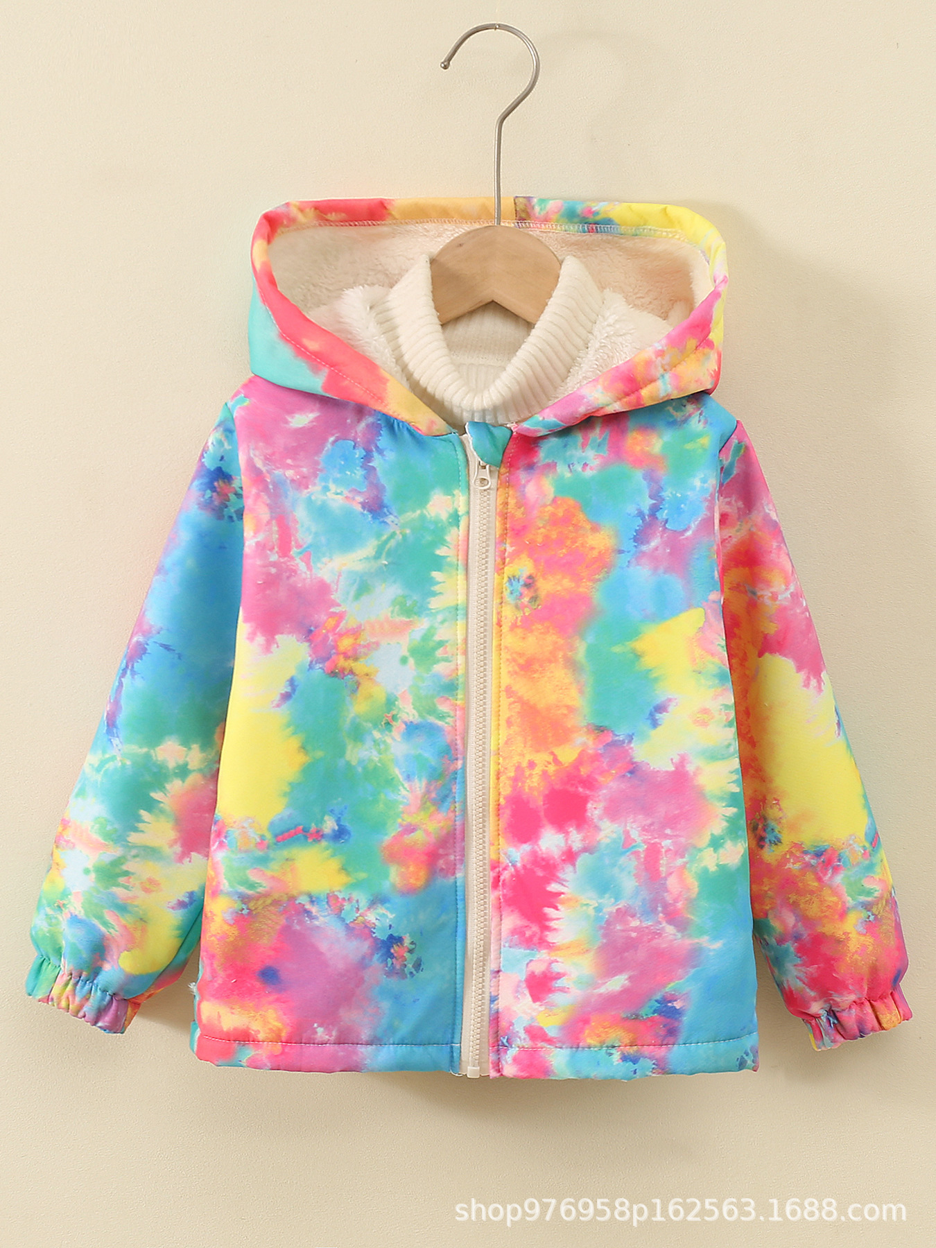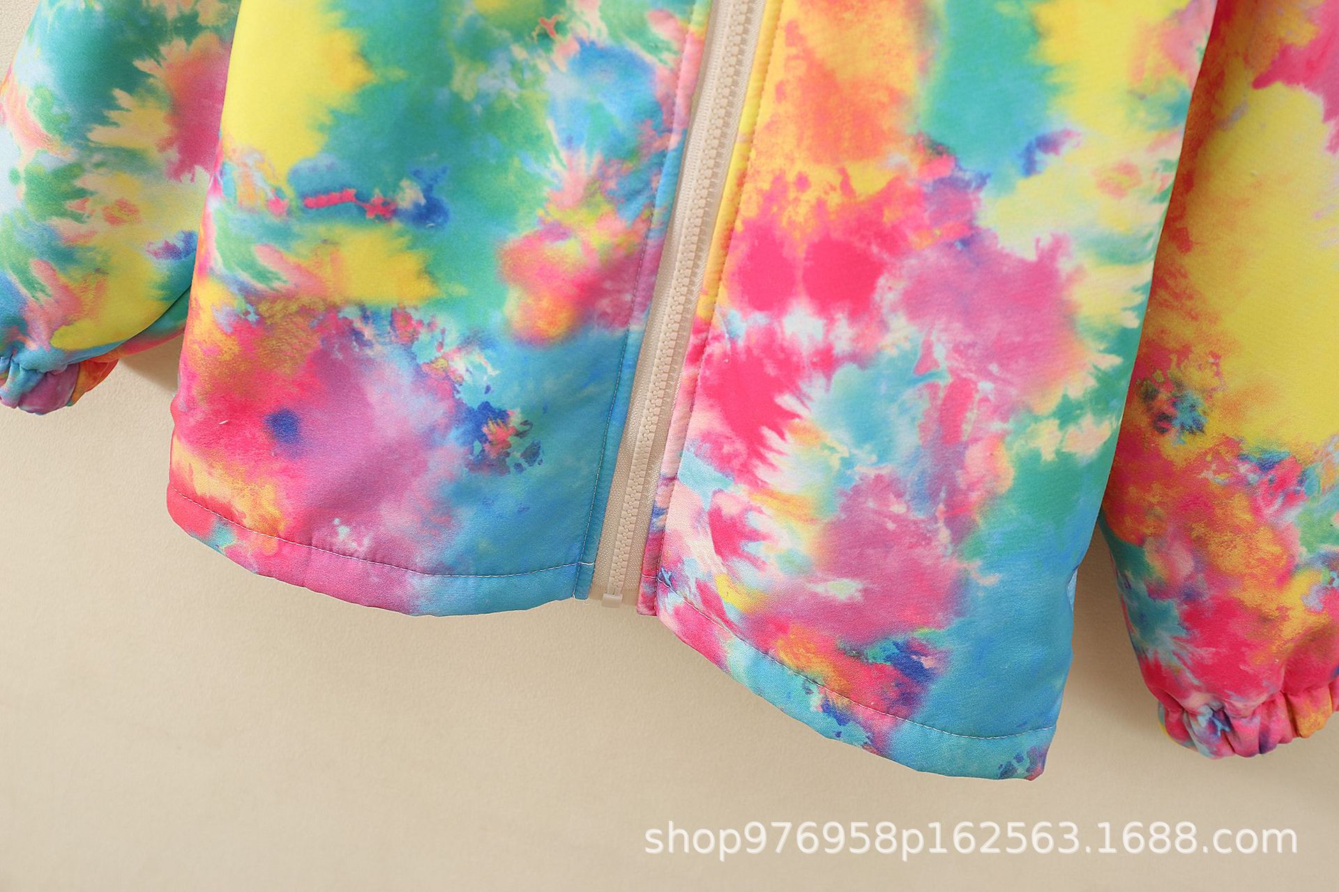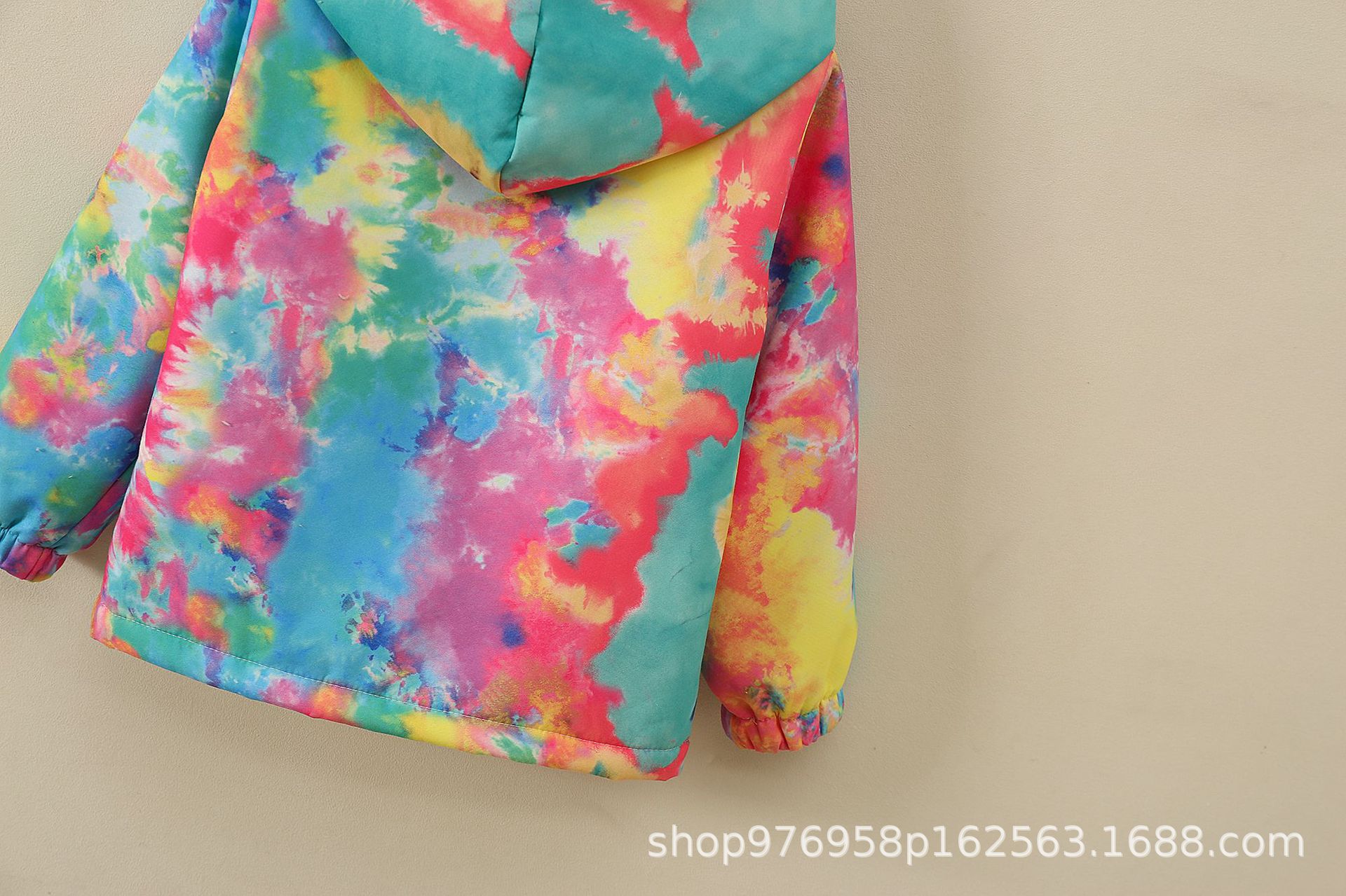 국경 간 어린이 새로운 가을 스타일 소녀 재킷, 중소 어린이 벨벳 패션 후드 타이 염색 중간 길이 재킷