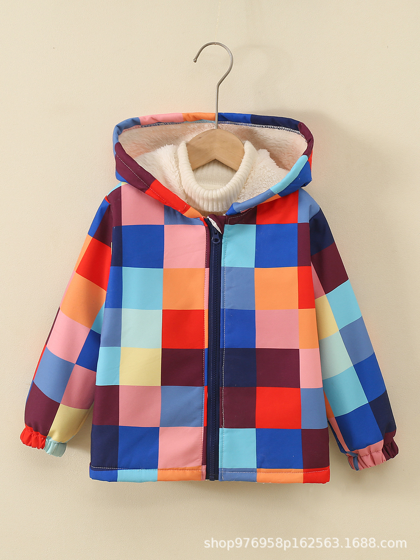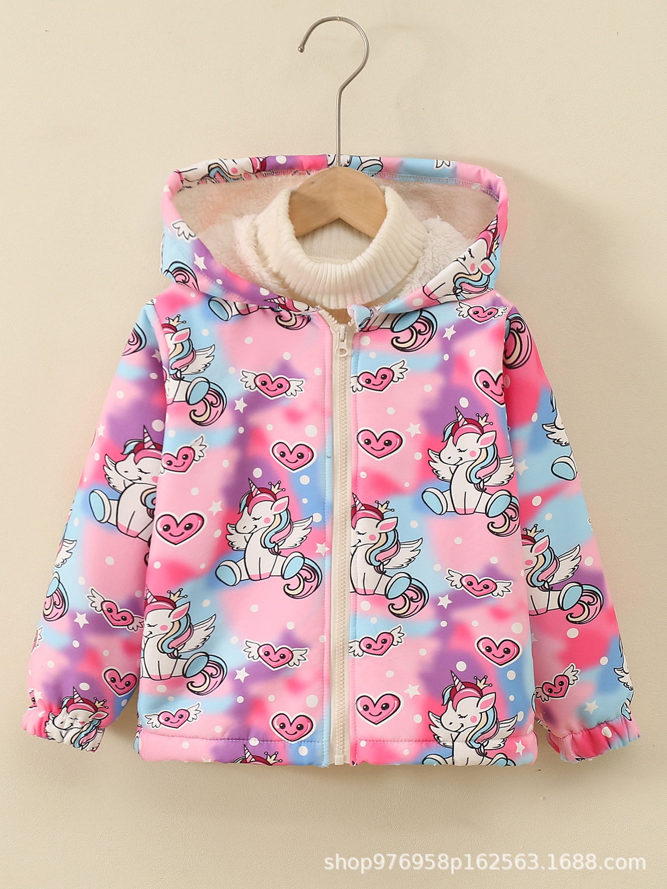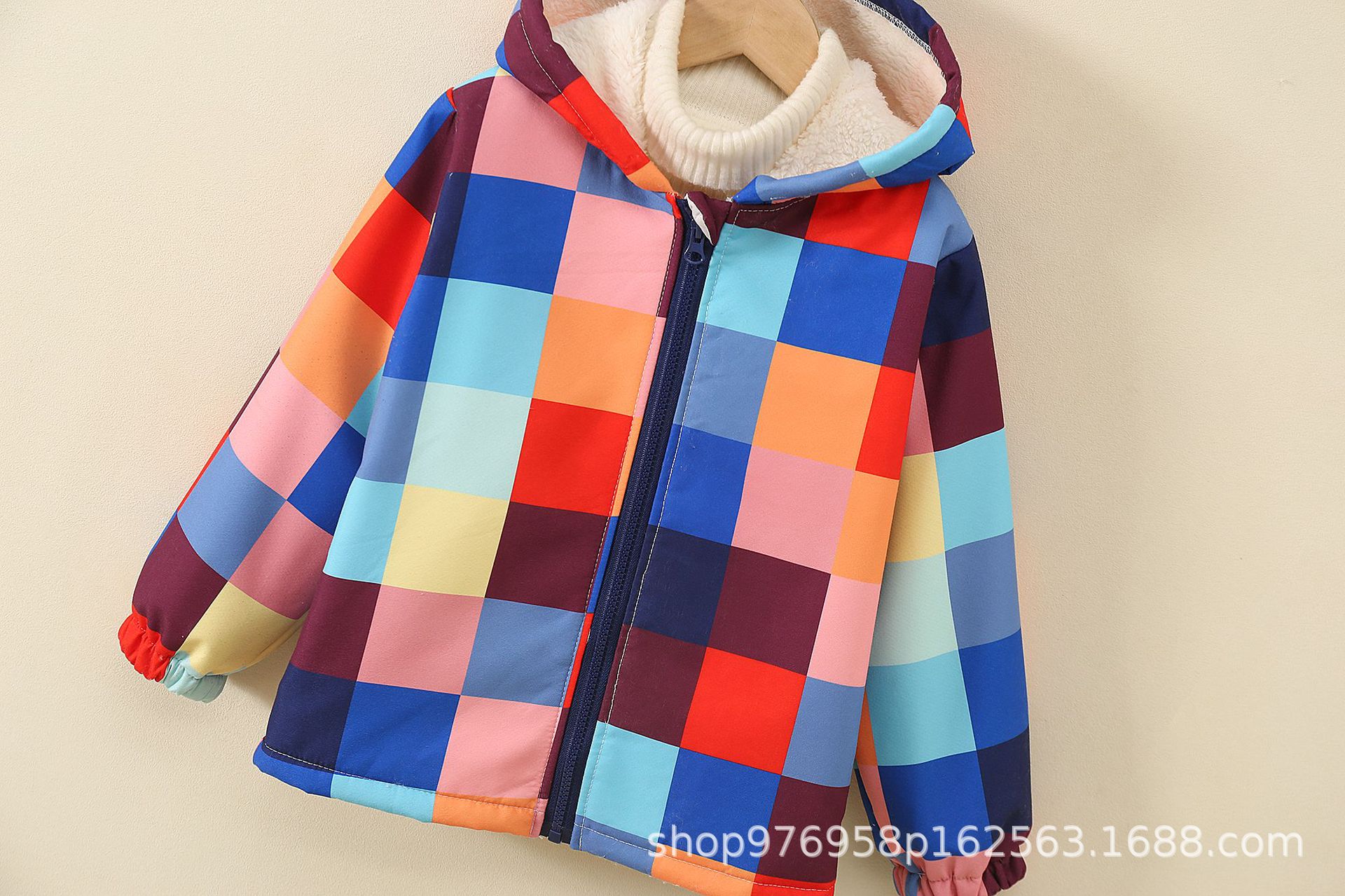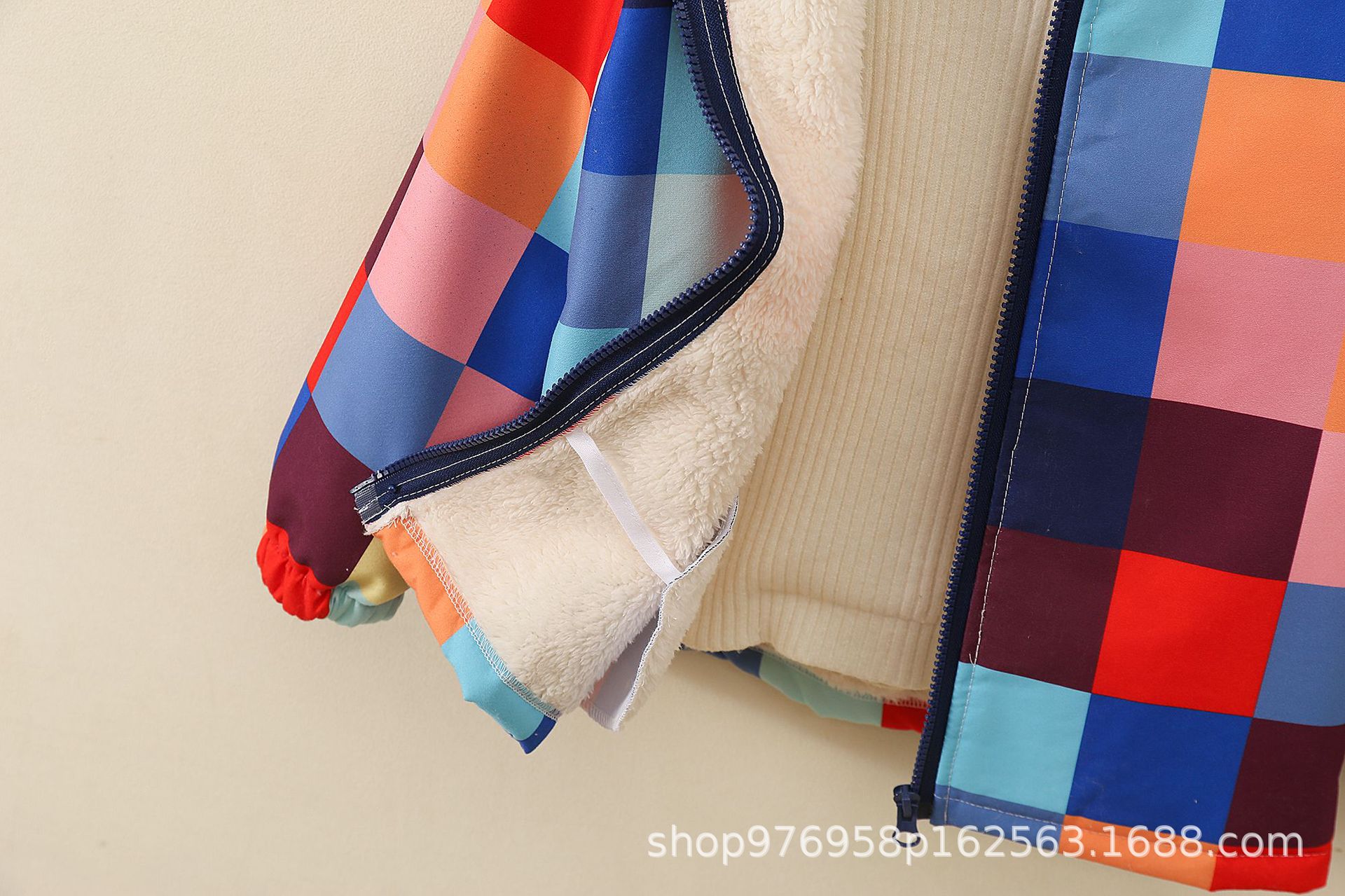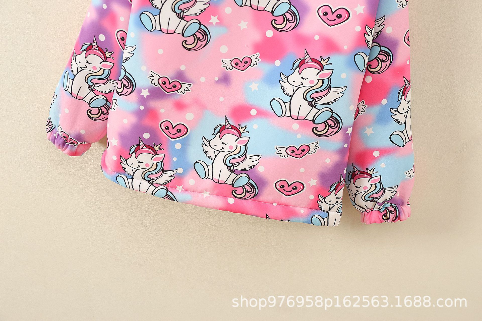 국경 간 어린이 새로운 가을 스타일 소녀 재킷, 중소 어린이 벨벳 패션 후드 타이 염색 중간 길이 재킷스토어 가기