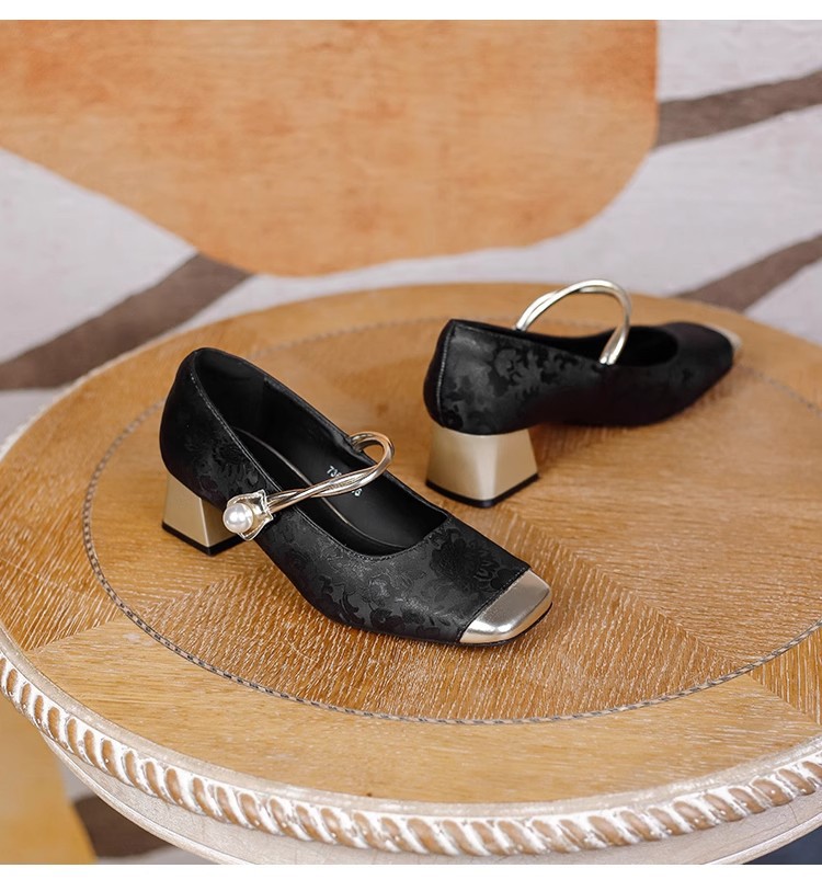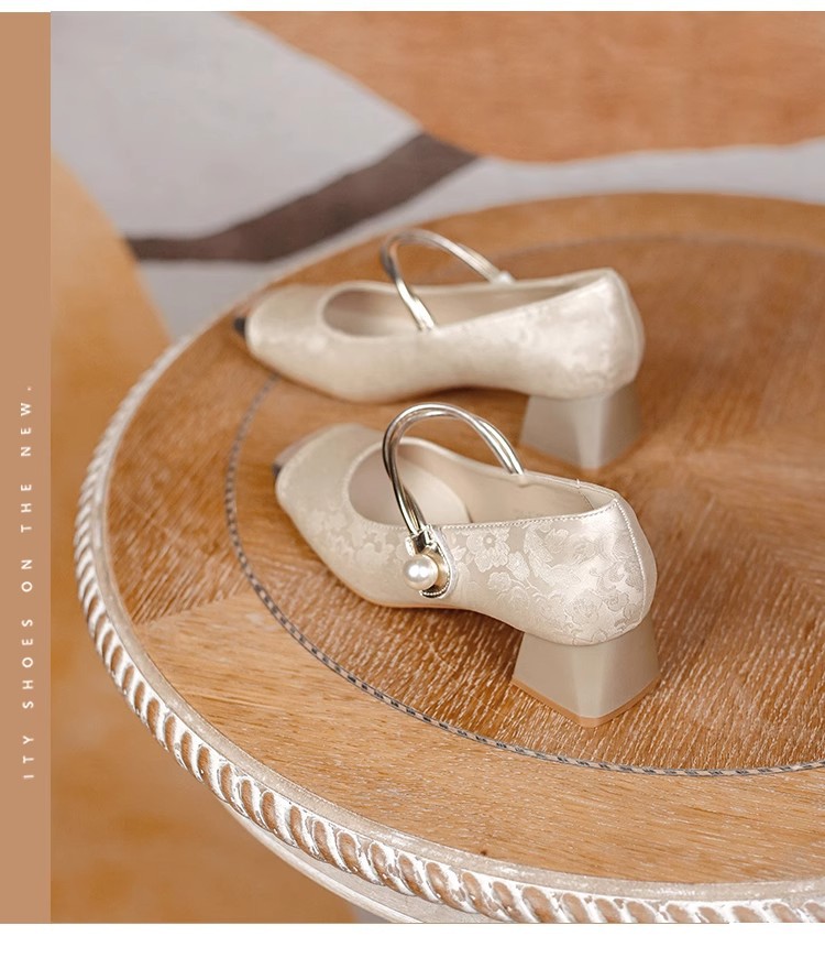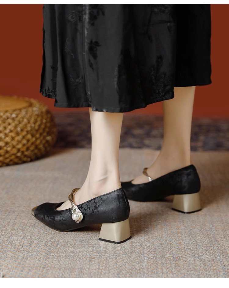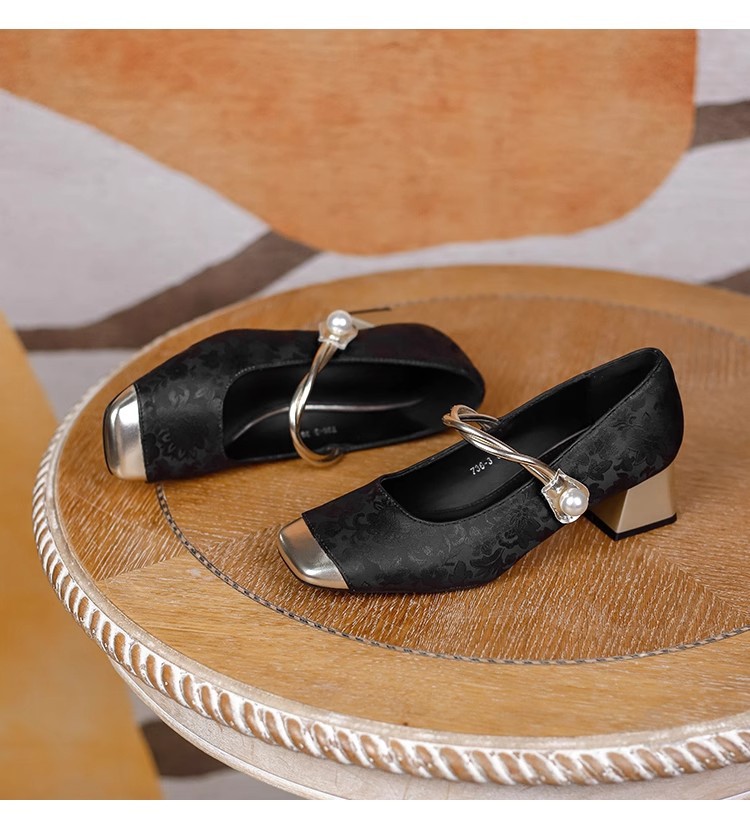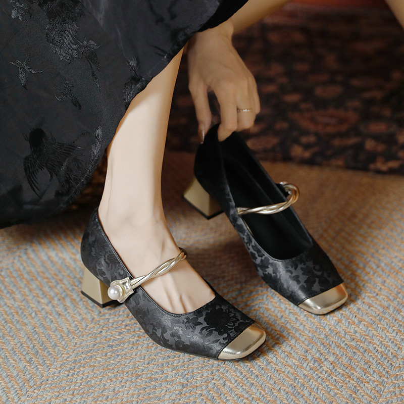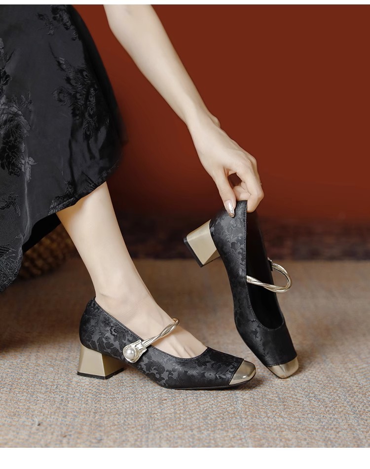 프랑스 복고풍 치파오 신발 2025 새로운 두꺼운 굽 색상 매칭 메리 제인 하이힐 여성을위한 새로운 중국 스타일의 민족 스타일 신발스토어 가기