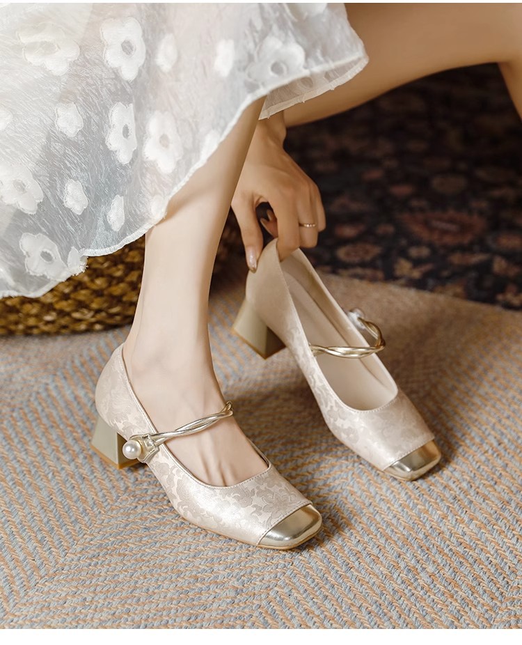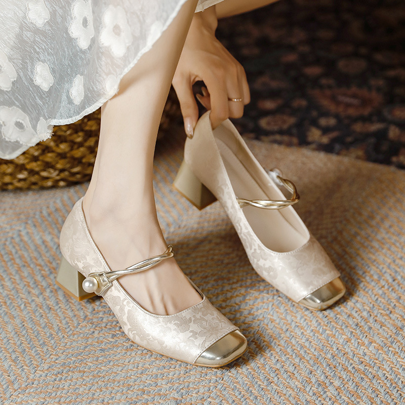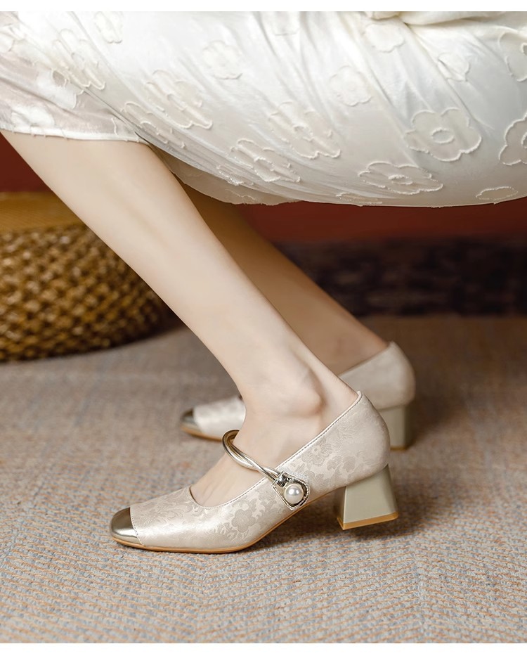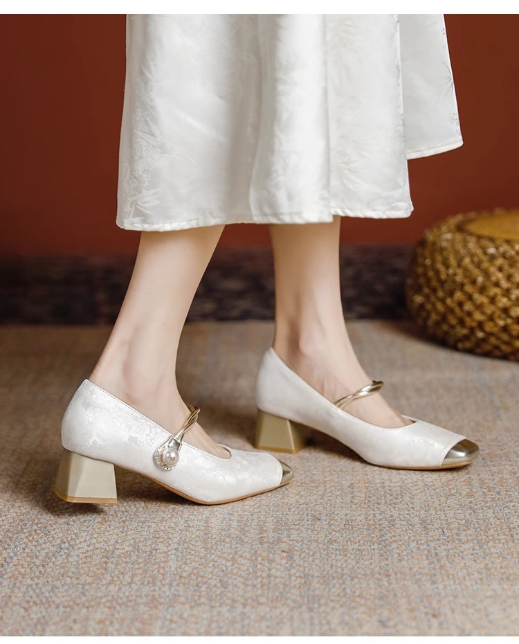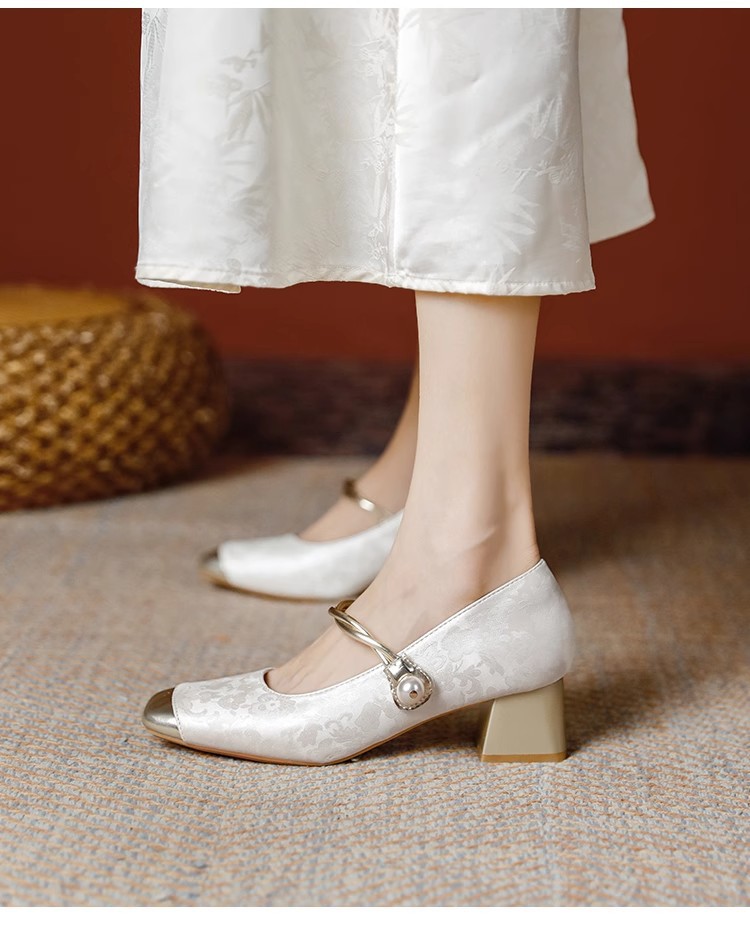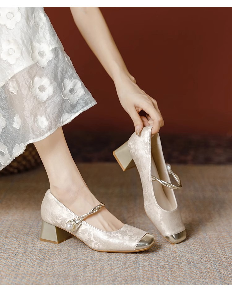 프랑스 복고풍 치파오 신발 2025 새로운 두꺼운 굽 색상 매칭 메리 제인 하이힐 여성을위한 새로운 중국 스타일의 민족 스타일 신발스토어 가기