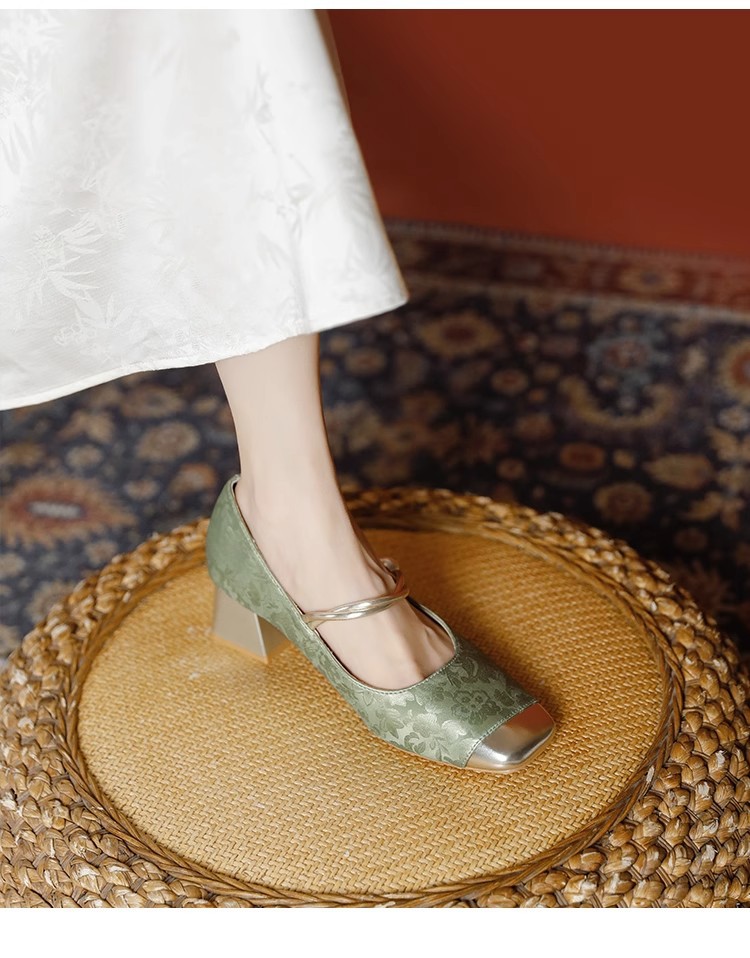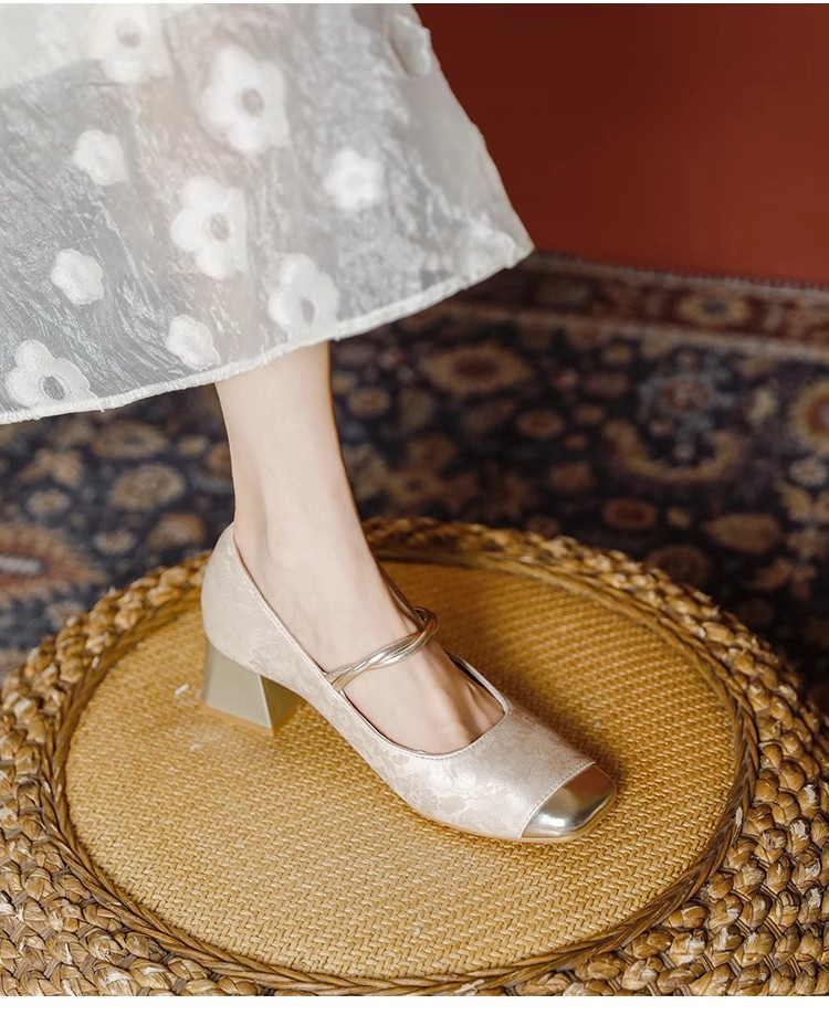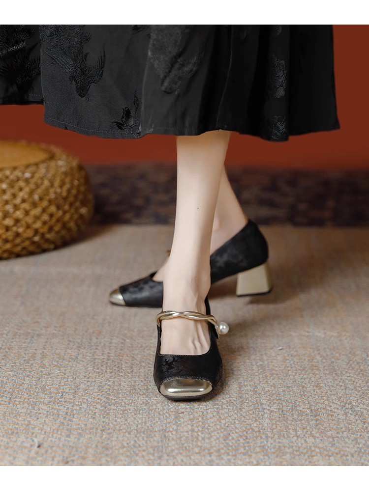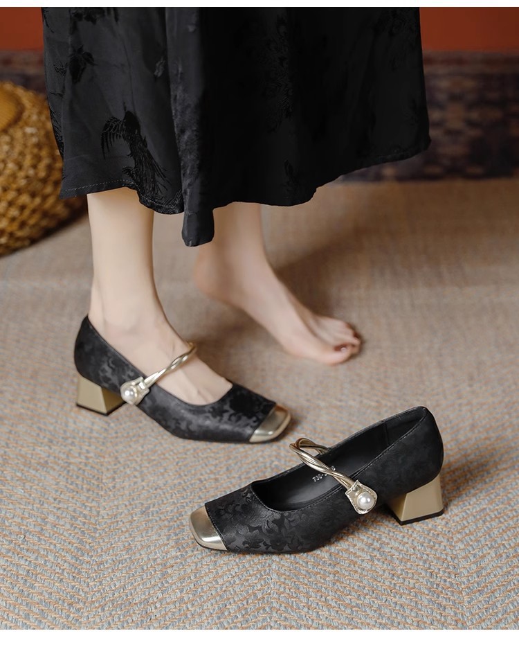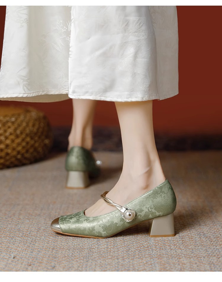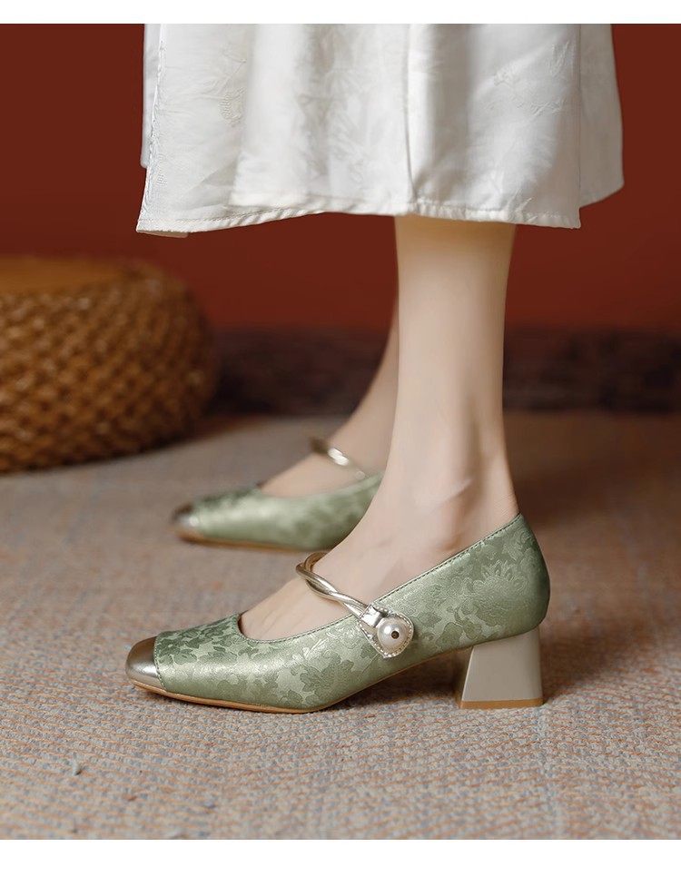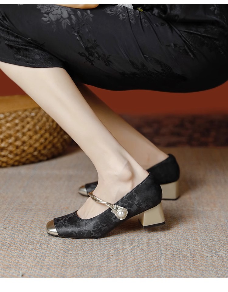 프랑스 복고풍 치파오 신발 2025 새로운 두꺼운 굽 색상 매칭 메리 제인 하이힐 여성을위한 새로운 중국 스타일의 민족 스타일 신발