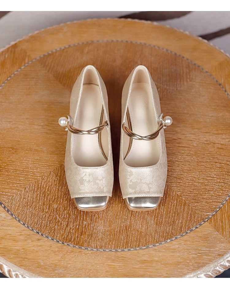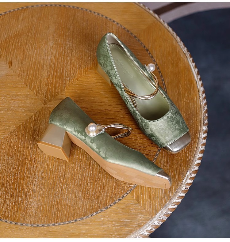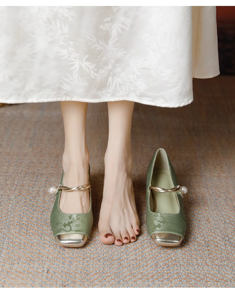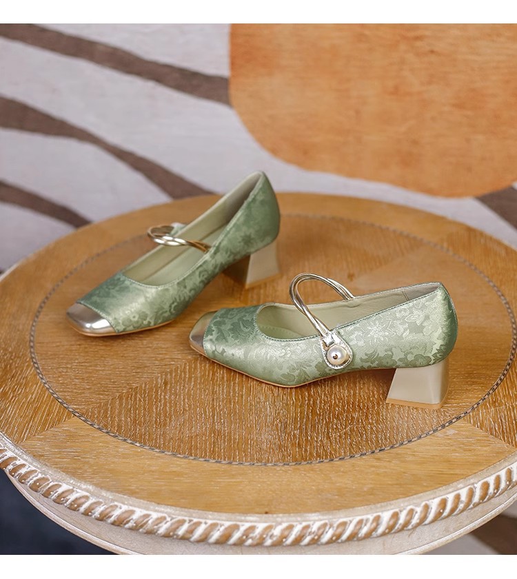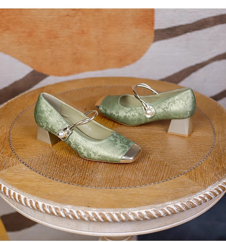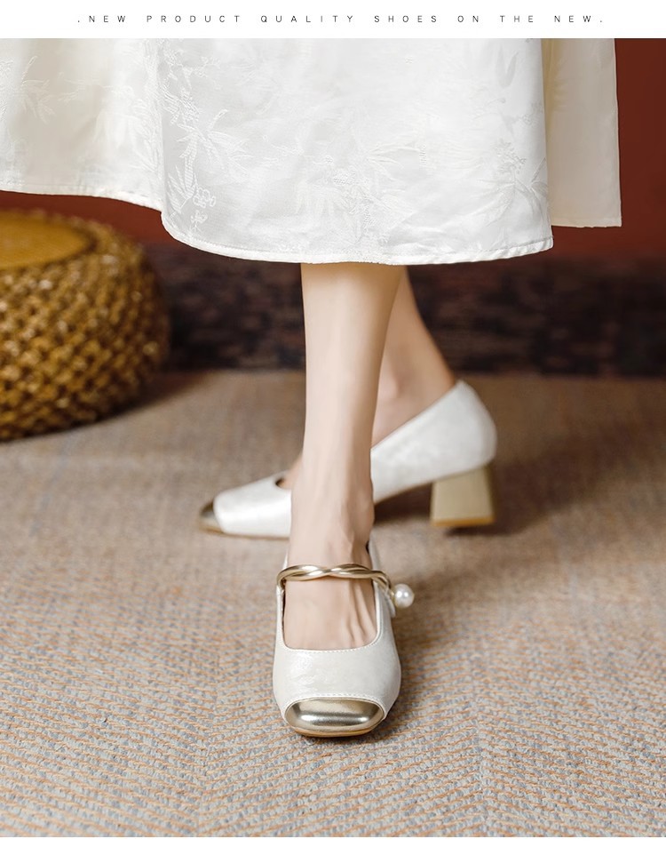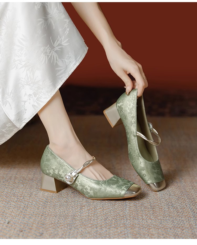 프랑스 복고풍 치파오 신발 2025 새로운 두꺼운 굽 색상 매칭 메리 제인 하이힐 여성을위한 새로운 중국 스타일의 민족 스타일 신발