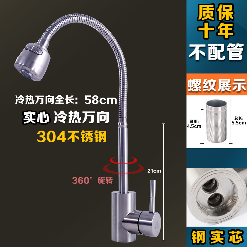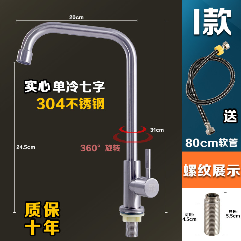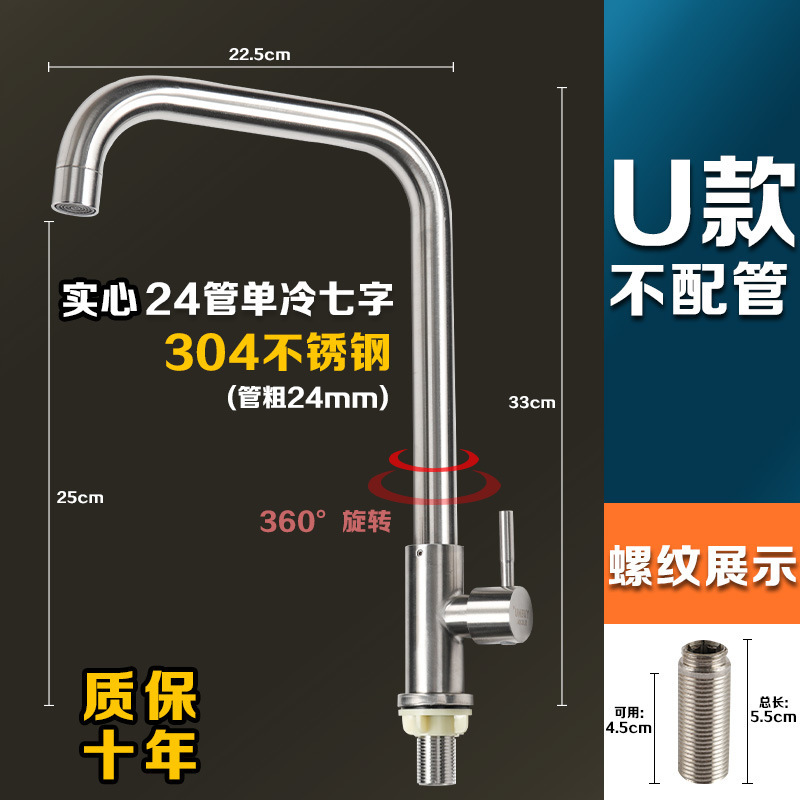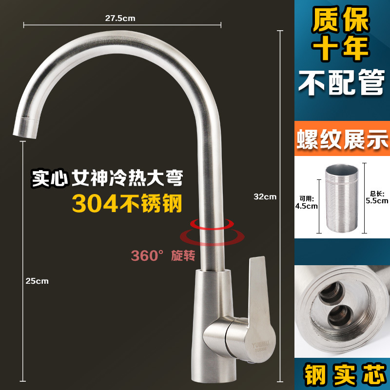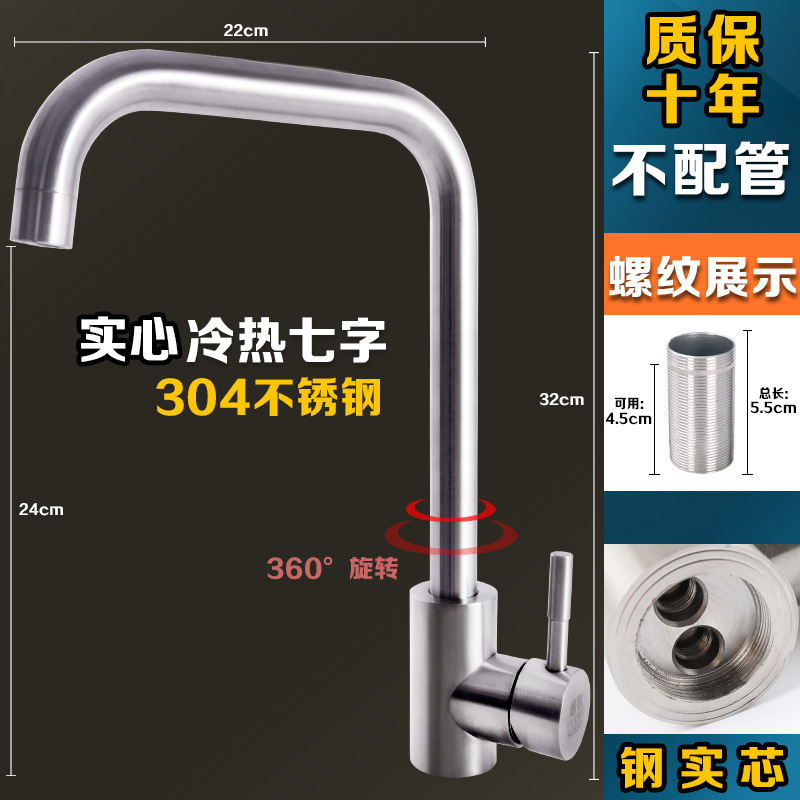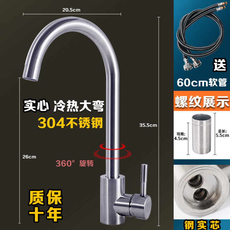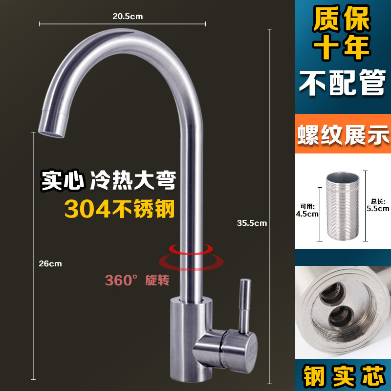 304 스테인레스 스틸 냉온수 수도꼭지 주방 식기 세척 싱크대 세면대 회전식 단일 냉수 수도꼭지 손 씻기스토어 가기