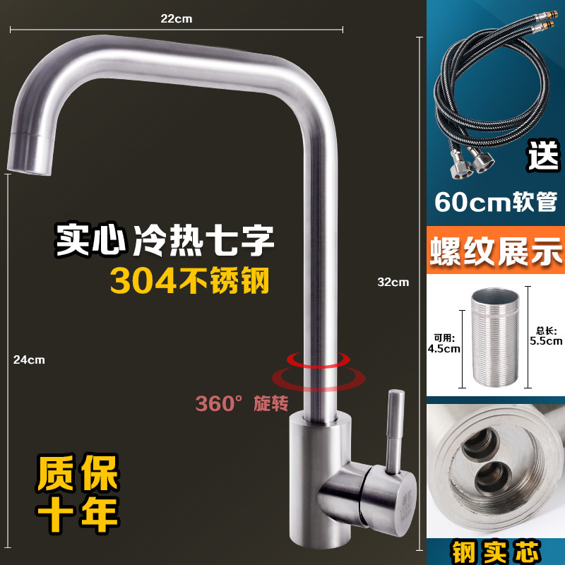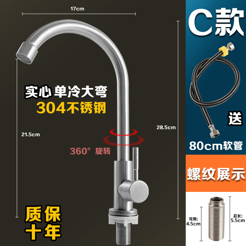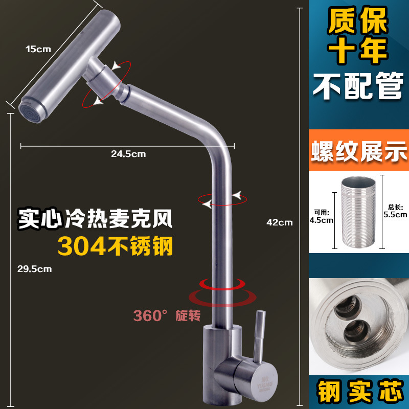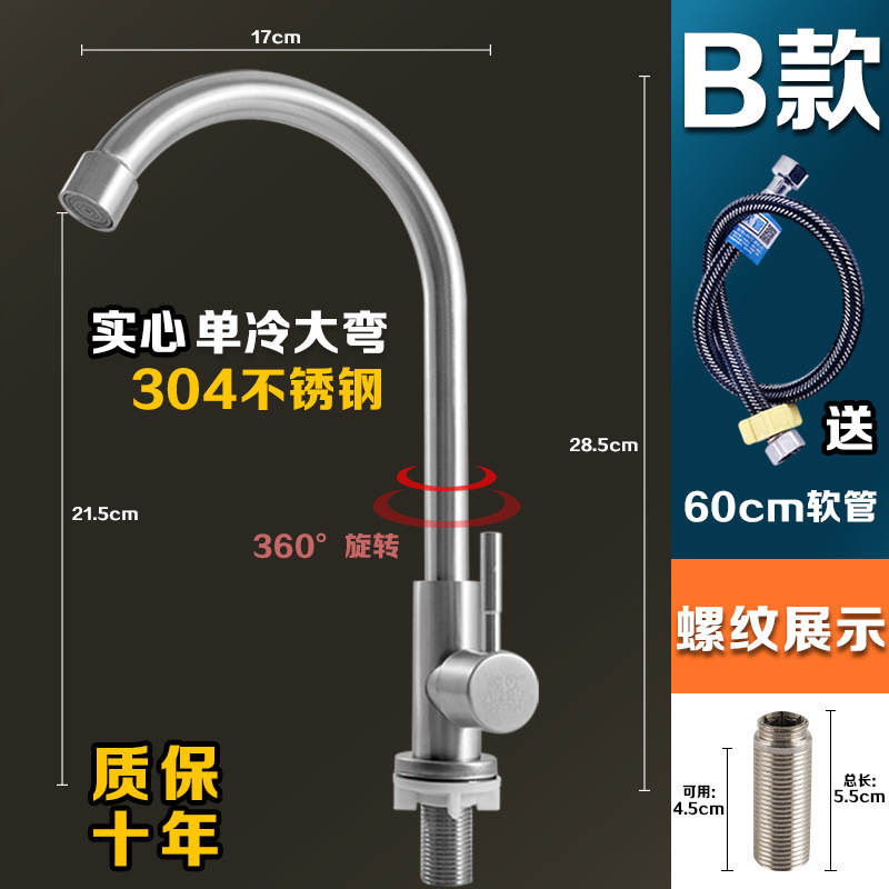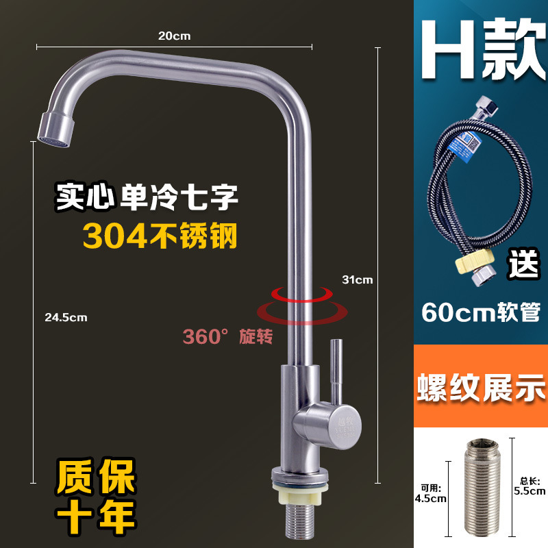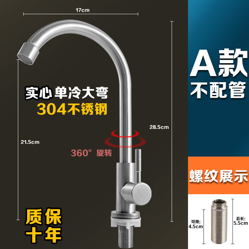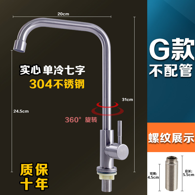304 스테인레스 스틸 냉온수 수도꼭지 주방 식기 세척 싱크대 세면대 회전식 단일 냉수 수도꼭지 손 씻기스토어 가기