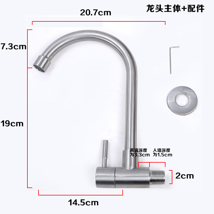 • 304 단일 냉간 낮은 7자 회전 입 수도꼭지♜
