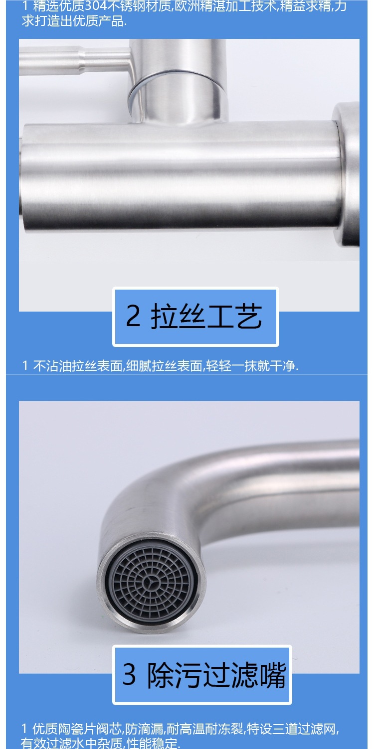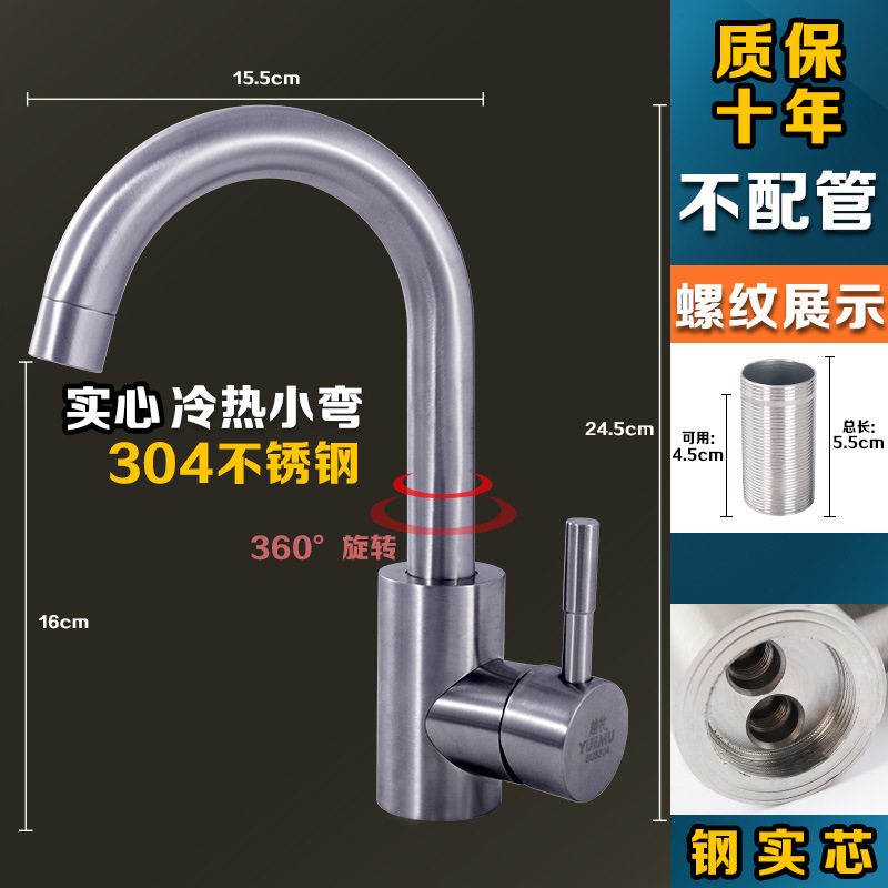 304 스테인레스 스틸 냉온수 수도꼭지 주방 식기 세척 싱크대 세면대 회전식 단일 냉수 수도꼭지 손 씻기