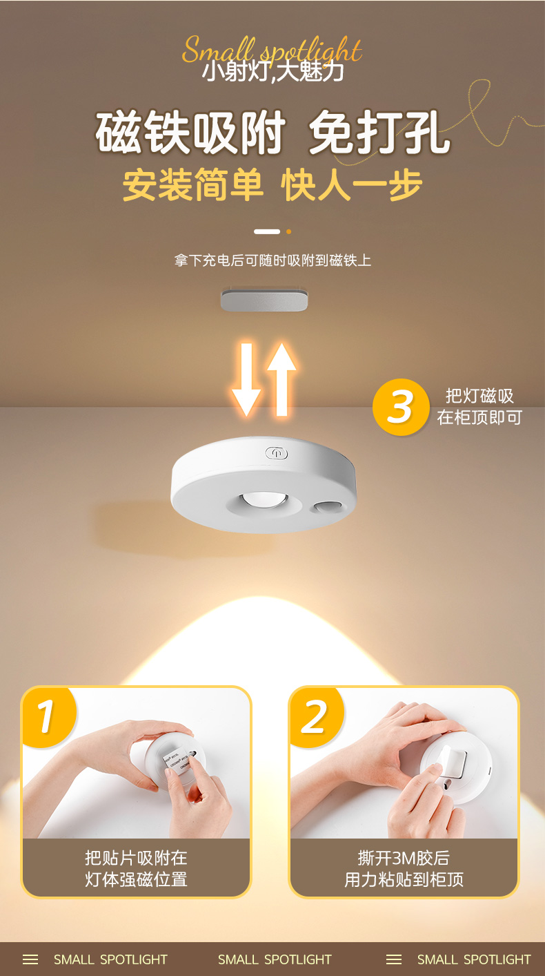 • 초박형 힐 스포트라이트 - 아이보리 화이트 - 3색 디밍 + 무료 스마트 리모컨*1 [센서 + 상시켜짐 + 자기흡입 + 초장수명]