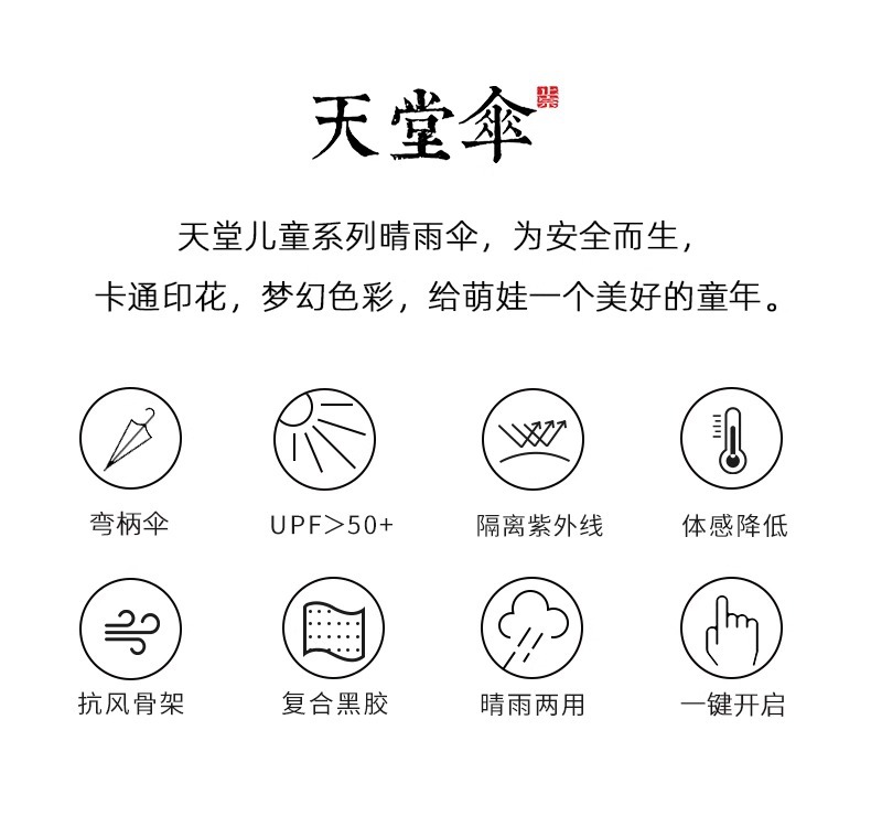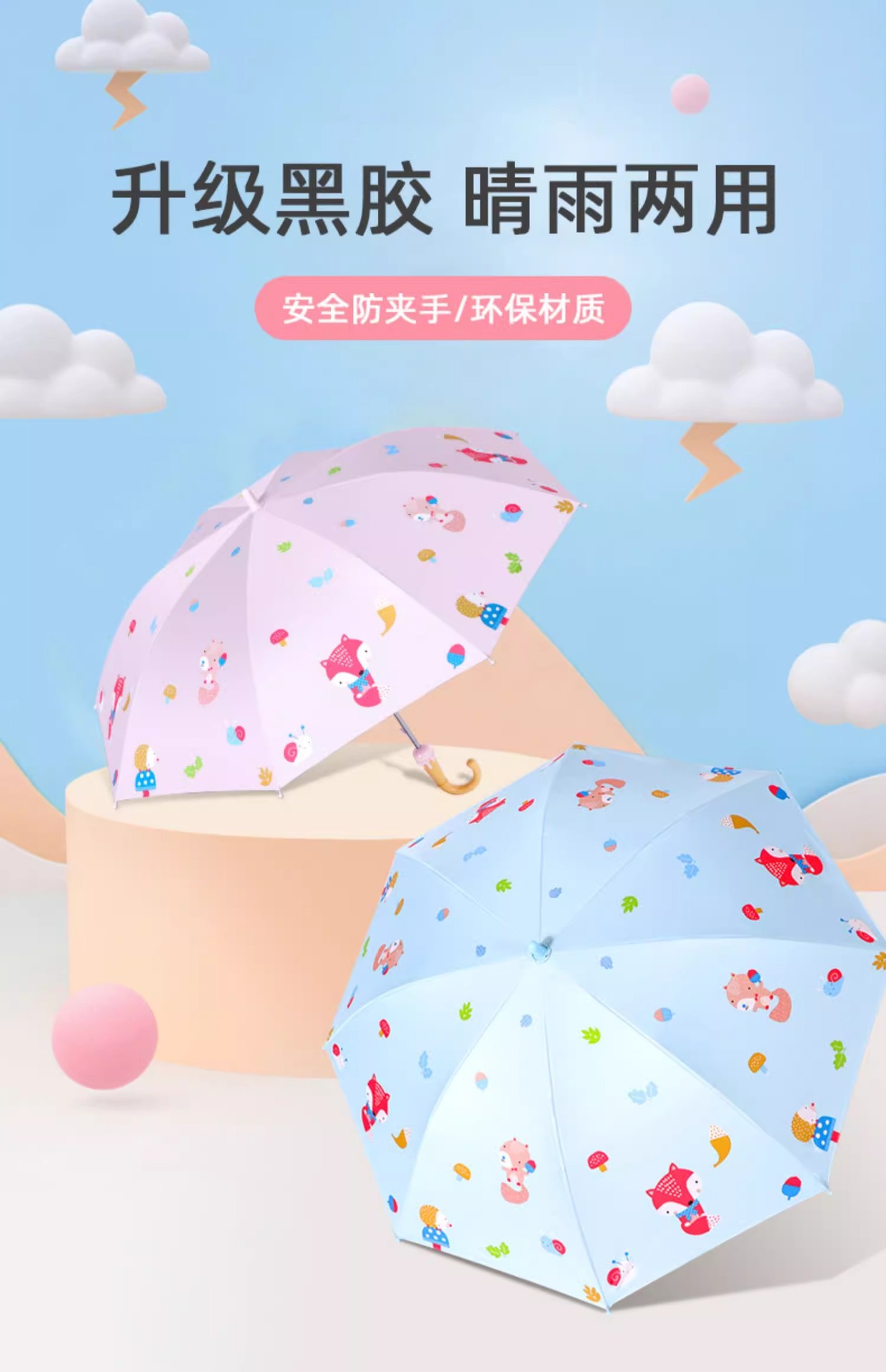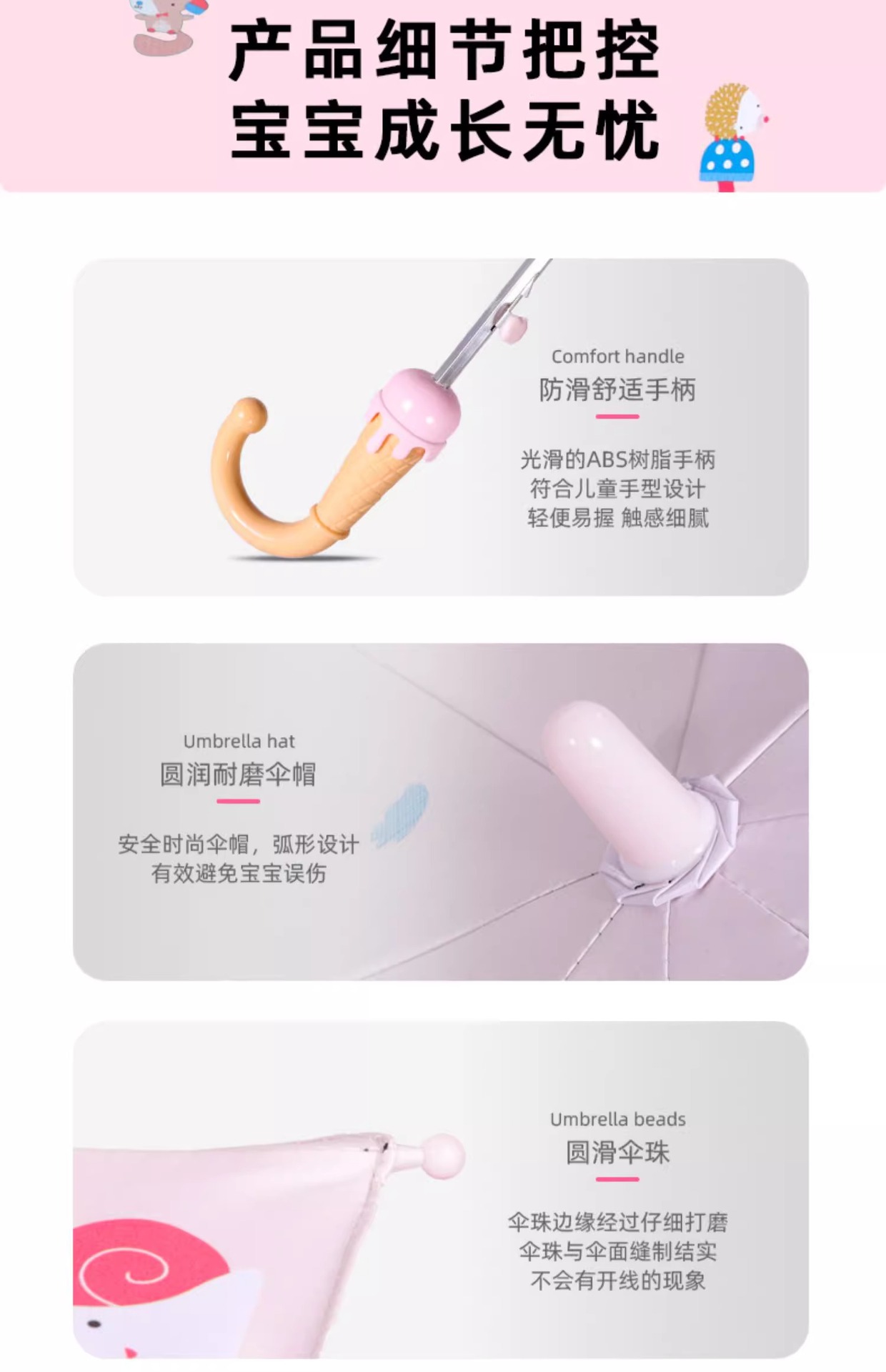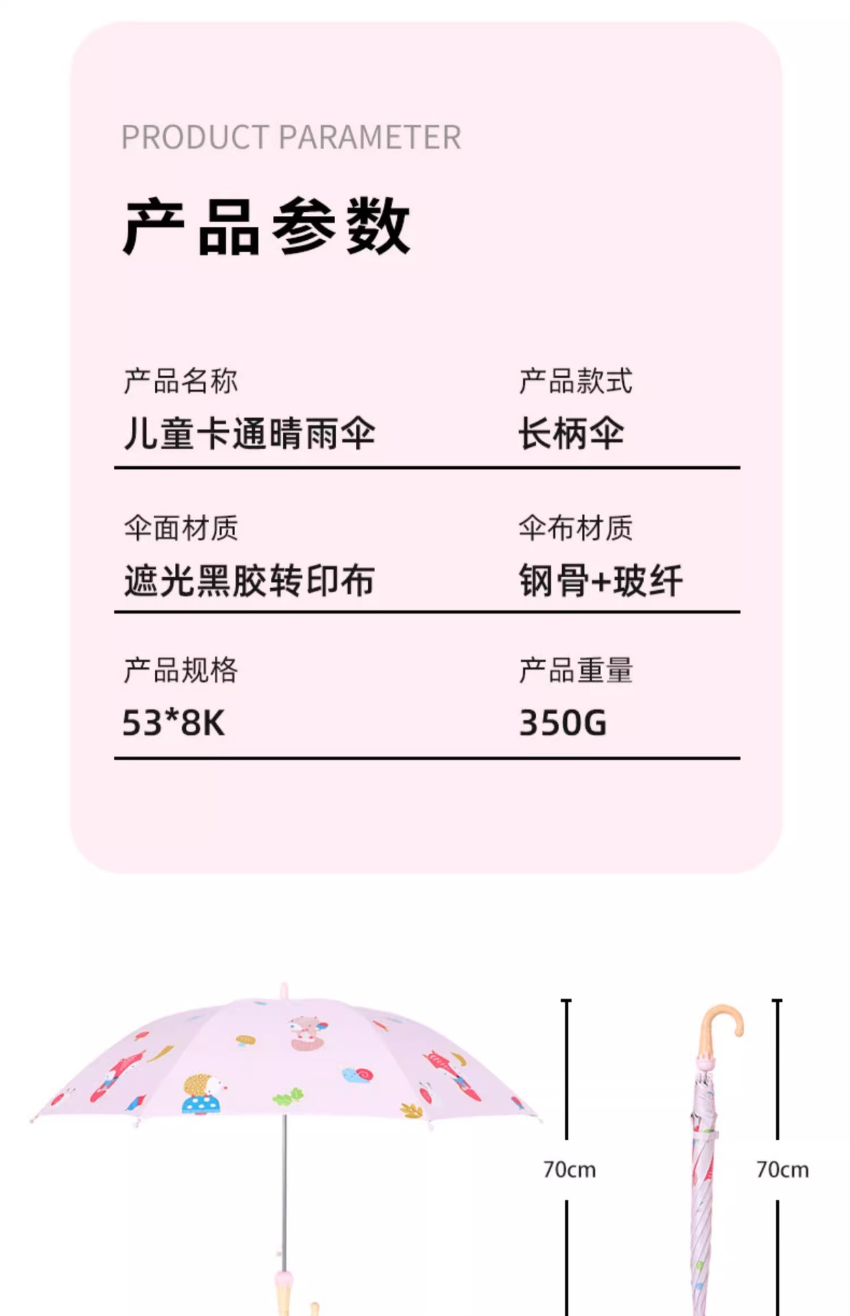 Paradise 정품 만화 어린이 우산, 비 또는 빛 우산, 안전한 긴 손잡이, 초등학교 특수 파라솔