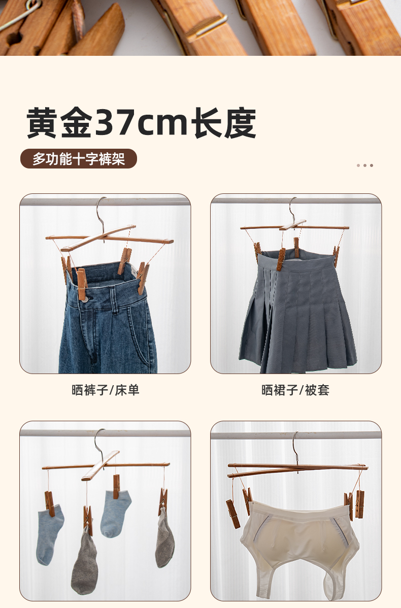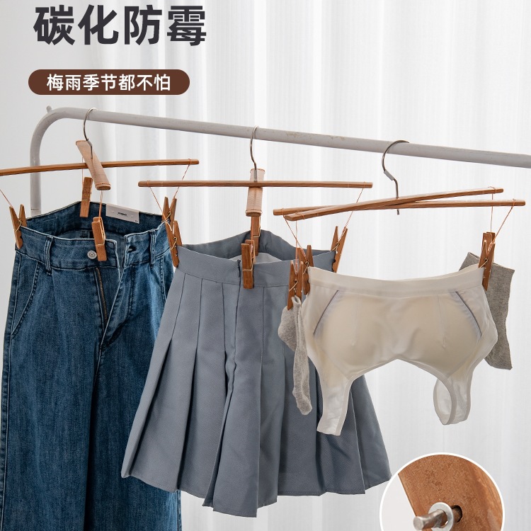 곰팡이 방지 탄화 십자형 바지 걸이, 대나무 바지 걸이, 두꺼운 구식 가정용 바지 클립, 바지 건조를 위한 4개의 클립, 흔적 없음