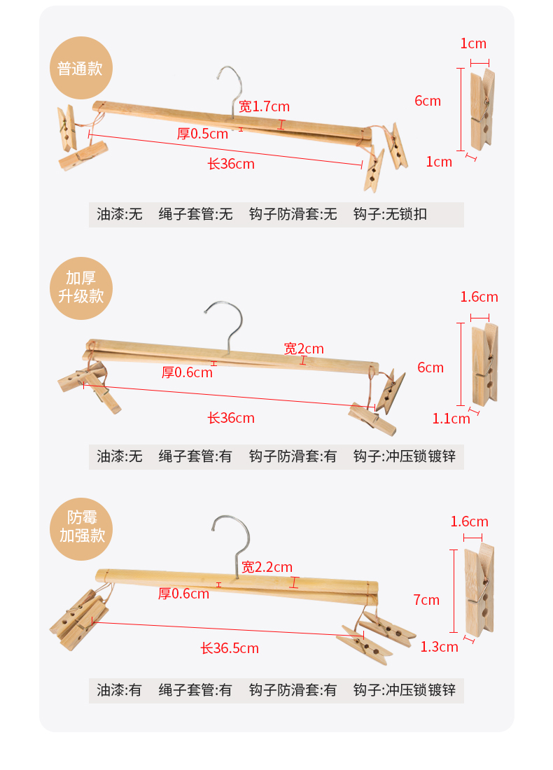 • 구식 대형 탄화 대나무 바지 걸이/대형 클립 대형
