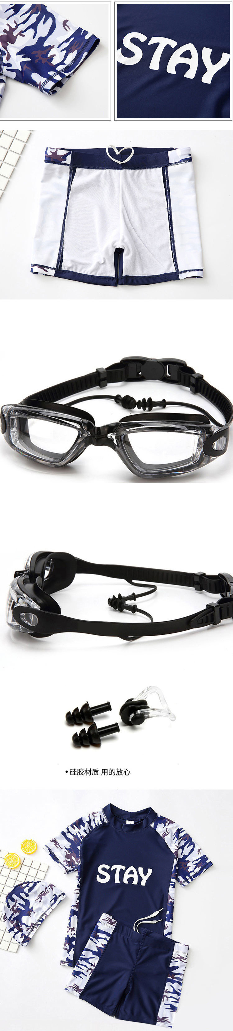 • 네이비 블루 위장 수영 고글 5종 세트