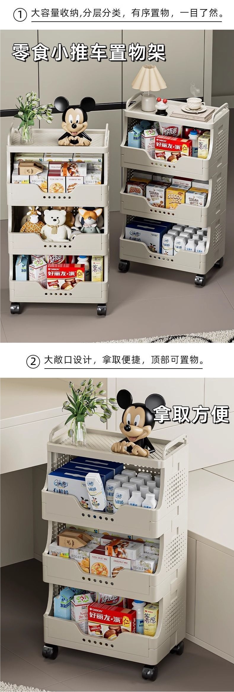 • 플래그십 모델 - 4겹 [강력한 내하중/강력하고 안정적인] 스낵 보관 랙에는 범용 바퀴가 함께 제공됩니다.