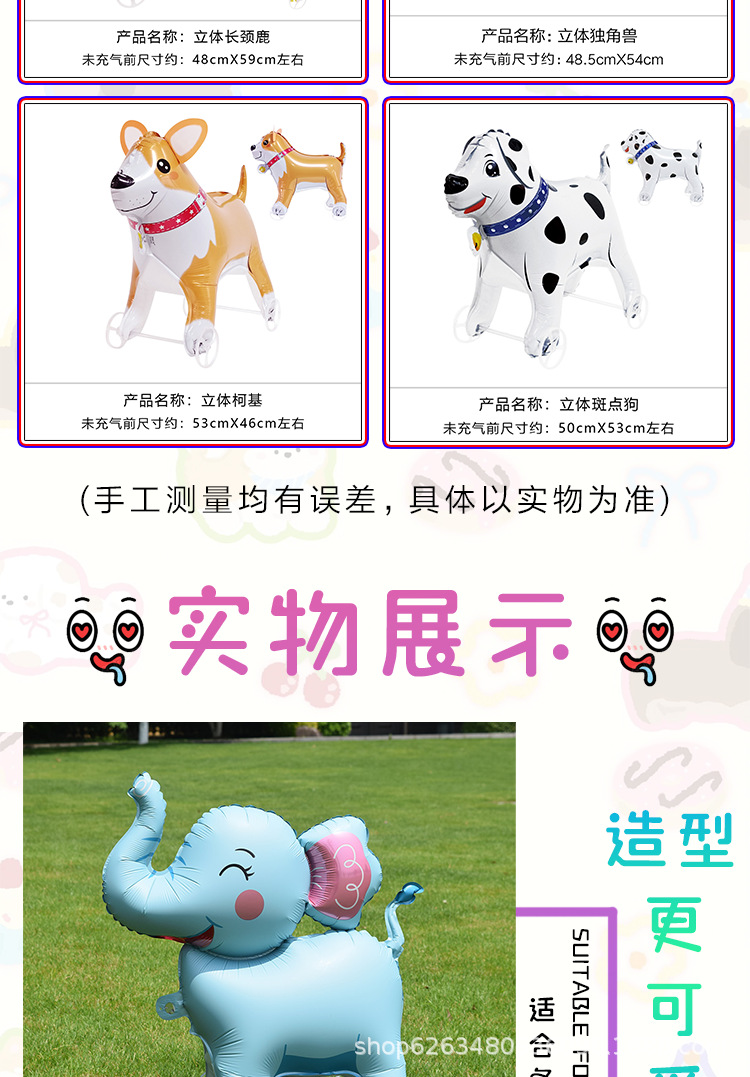 바퀴가 달린 새로운 스타일의 조명 만화 동물 입체 걷는 풍선 어린이 생일 장식 광장 노점 작은 선물