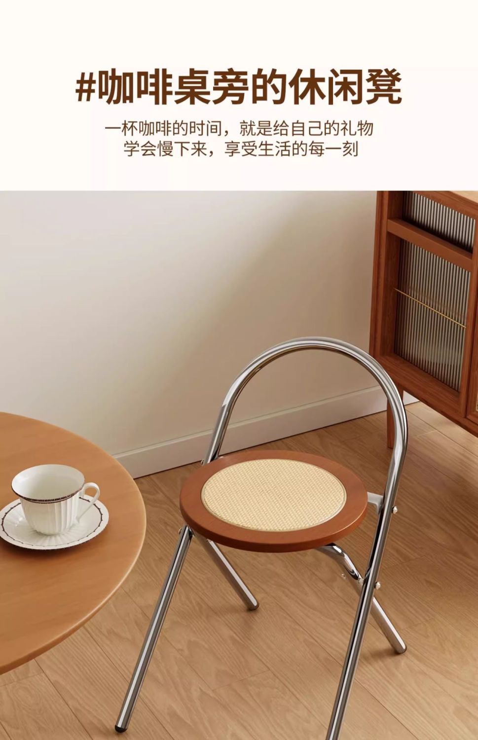 중세 스타일 의자 접이식 의자 홈 다이닝 의자 발코니 레저 의자 협상 의자 등받이 작은 둥근 의자스토어 가기