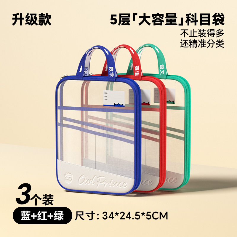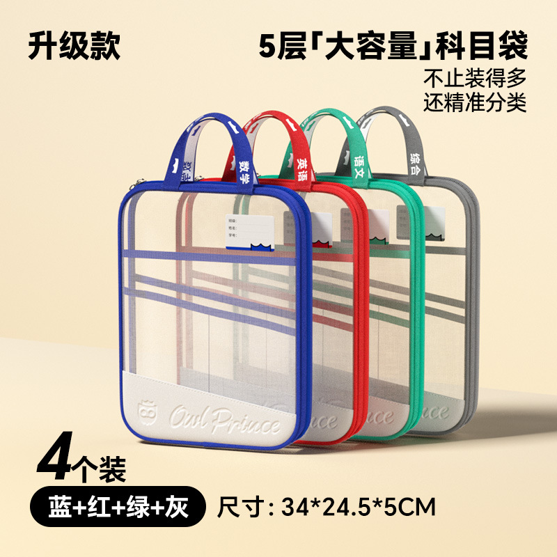 고양이 왕자 학생 대용량 L자형 과목 가방 메쉬 학습 교과서 보관 가방 다기능 정보 파일 가방