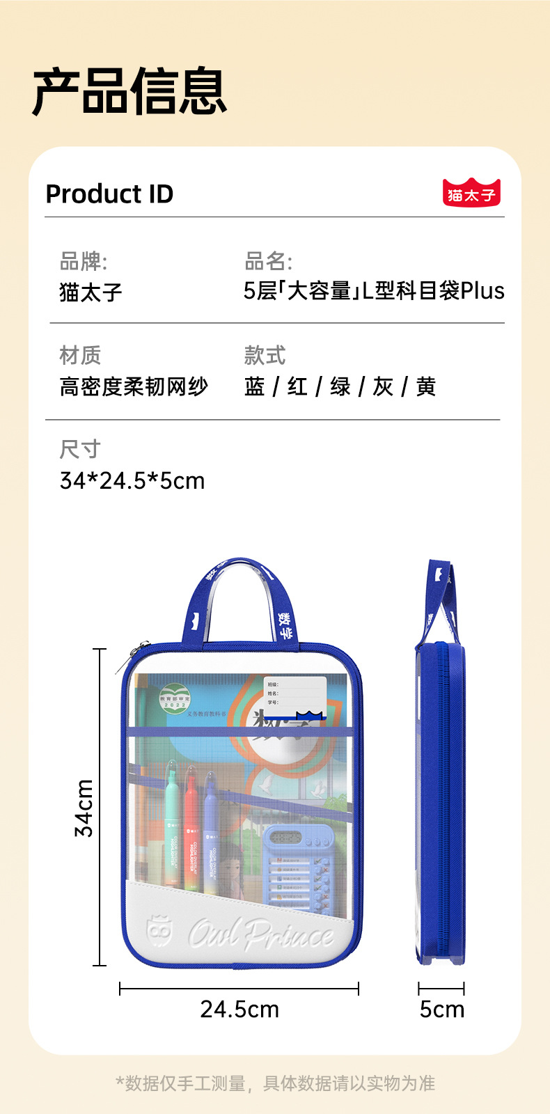 고양이 왕자 학생 대용량 L자형 과목 가방 메쉬 학습 교과서 보관 가방 다기능 정보 파일 가방스토어 가기