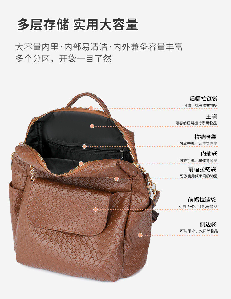 D5O 짠 더블 백 새로운 패션 PU 여성 배낭 대용량 야외 여행 가방 유행 캐주얼 배낭스토어 가기