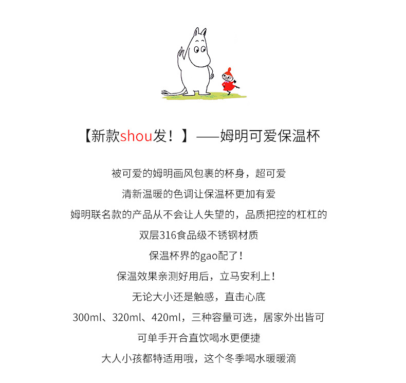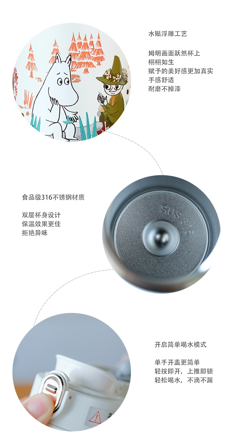 핀란드 무민 보온병 컵 스테인레스 스틸 커피 컵 휴대용 컵 여성을위한 냉온수 컵스토어 가기