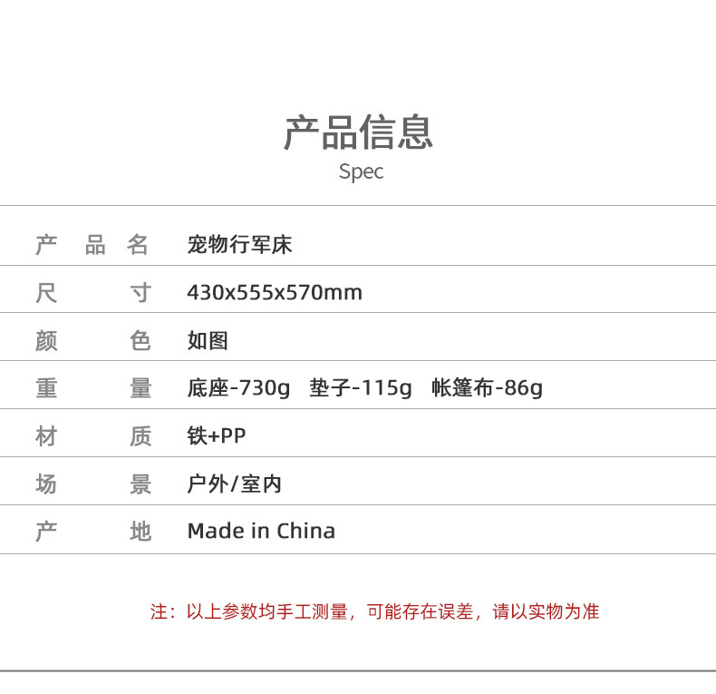 • 애완동물 캠프베드 + 매트 + 천장