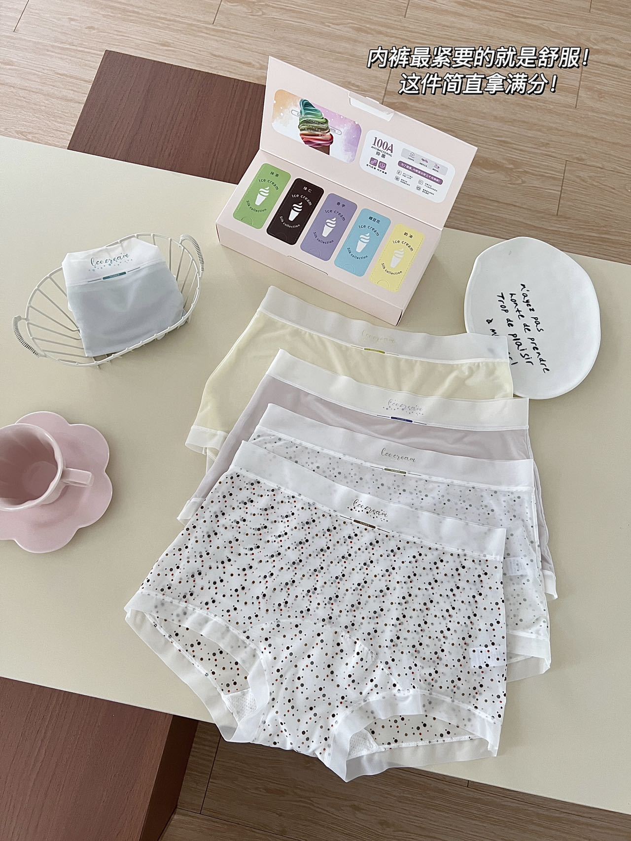여름 신상 크림 아이스 스킨 팬츠, 미드 웨이스트 속옷, 고탄성, 무봉제, 누드 느낌, 편안하고 통기성이 뛰어나며 속건성 소녀용 팬티스토어 가기