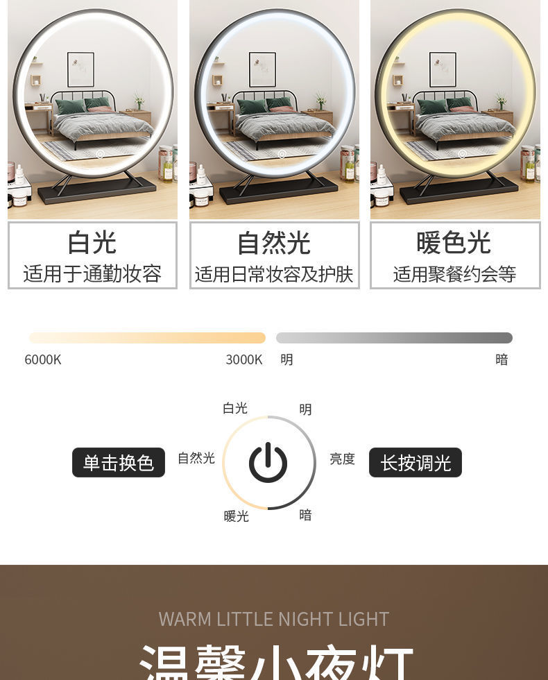 조명이 있는 화장대 화장 거울, 데스크탑, 필 라이트, 기숙사 학생, 인터넷 연예인 침실 스타일 대형 거울스토어 가기