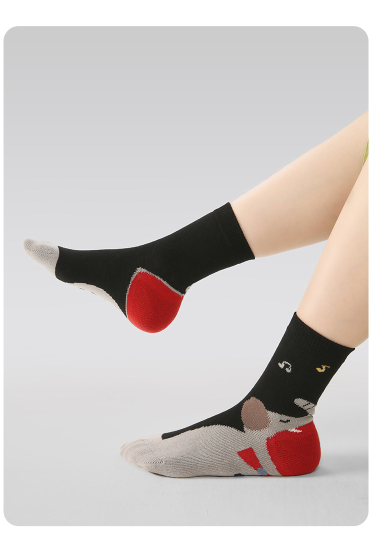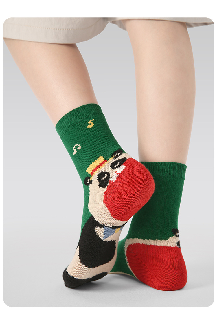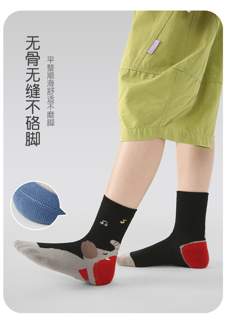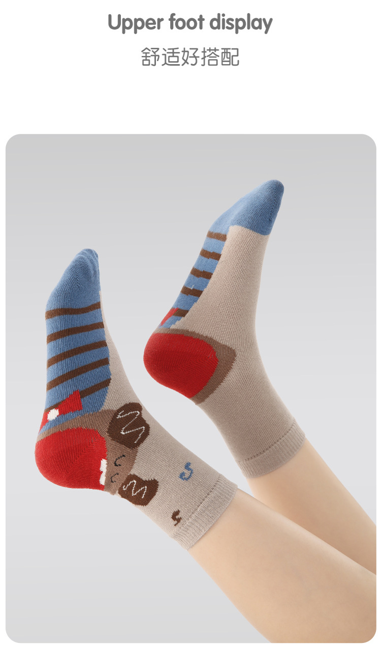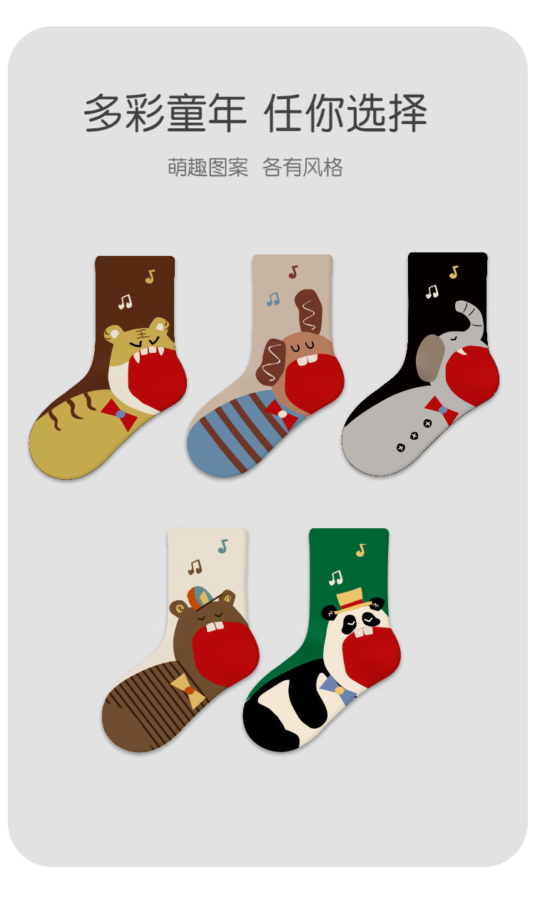 어린이 양말 도매 2025 가을, 겨울 새로운 만화 동물 양말 면화 뼈없는 색상 일치 스포츠 스타일 소년 양말