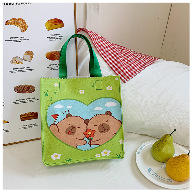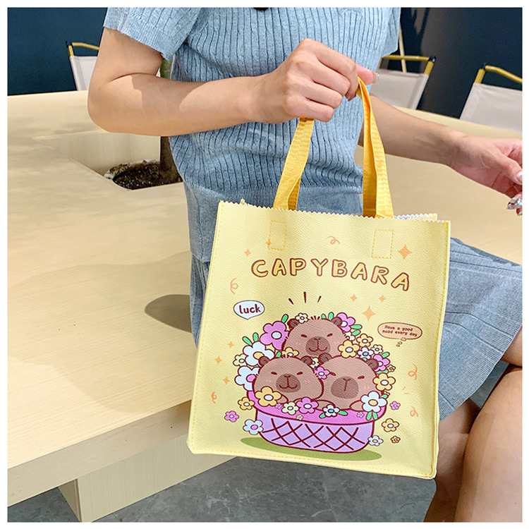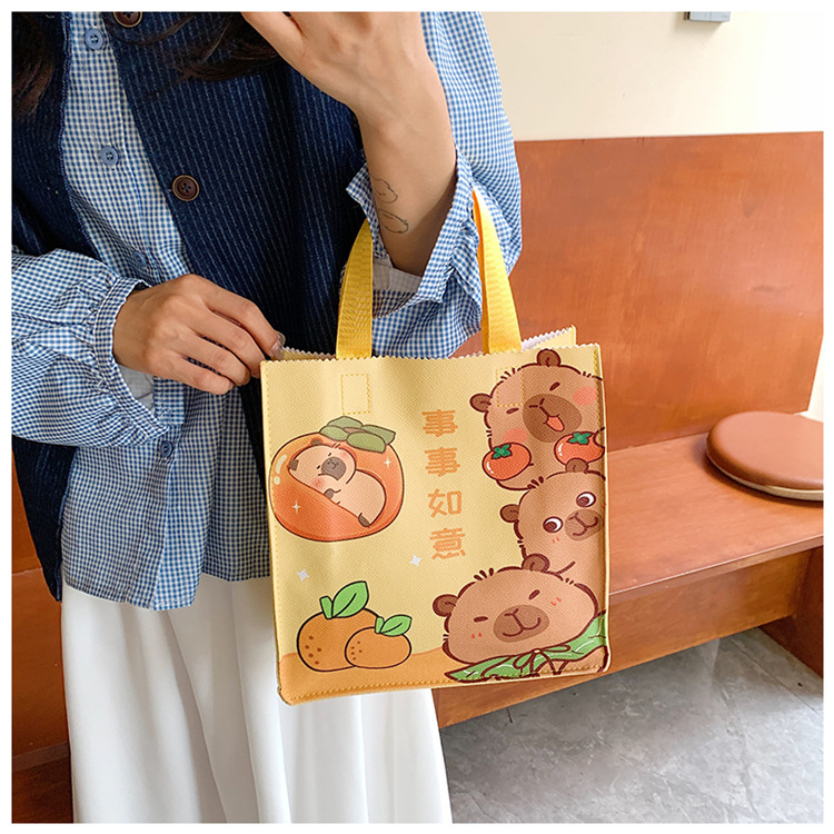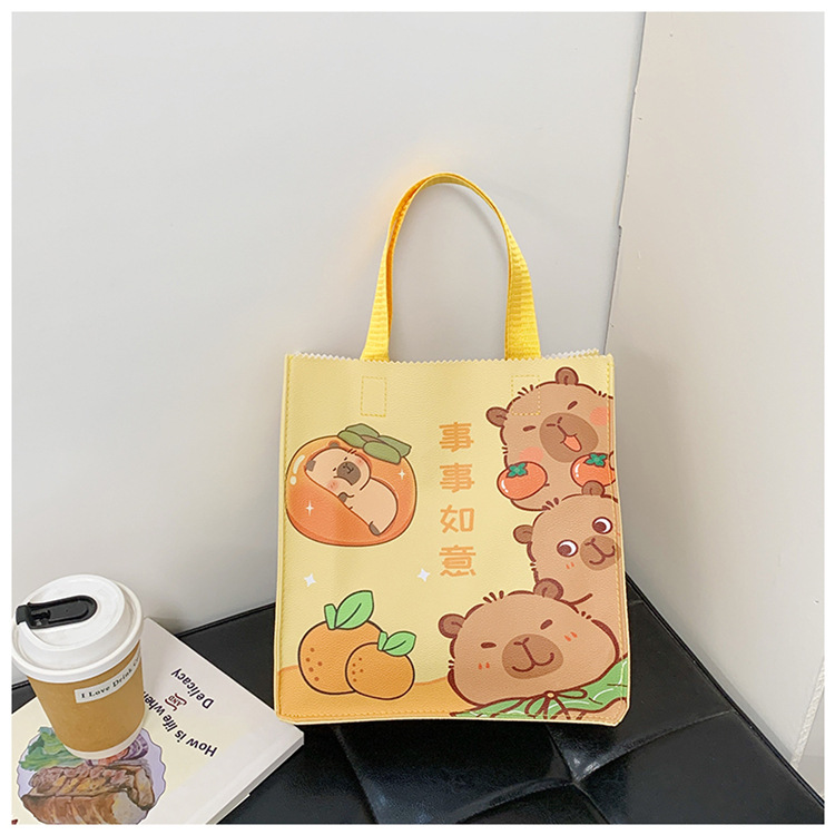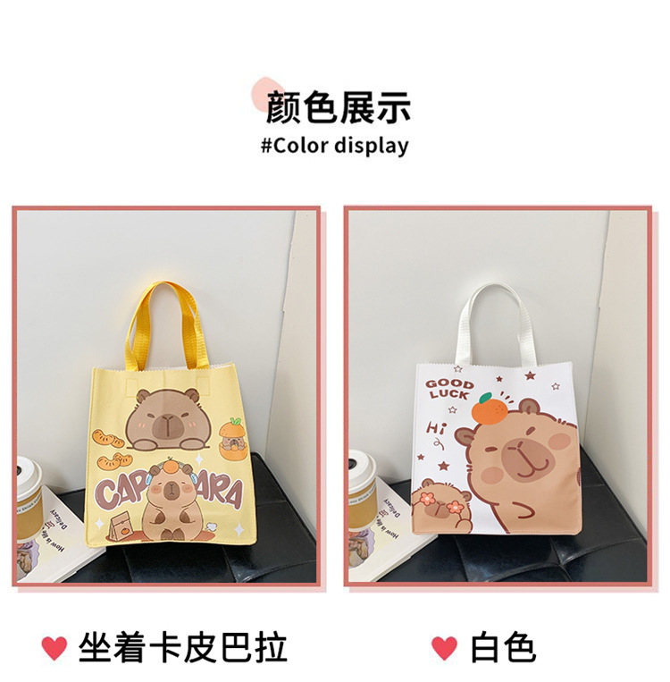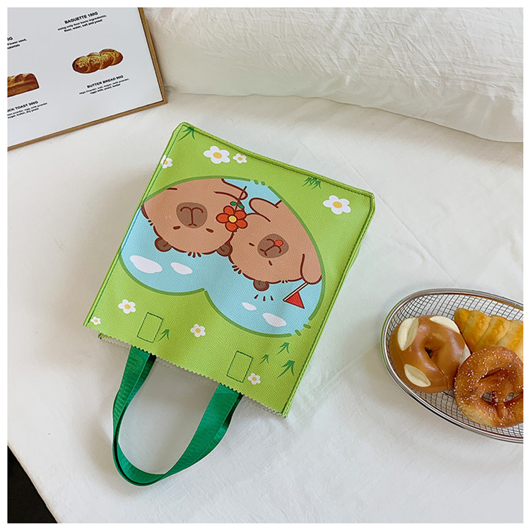 여성을위한 만화 Kapibara 핸드백 가방 2025 새로운 귀여운 도시락 가방 학생 손으로 들고 다니는 책 가방 보관 가방