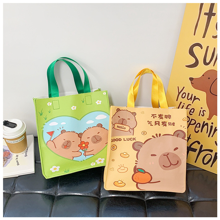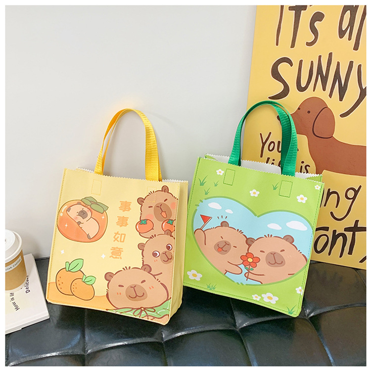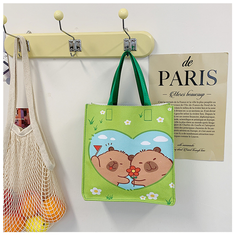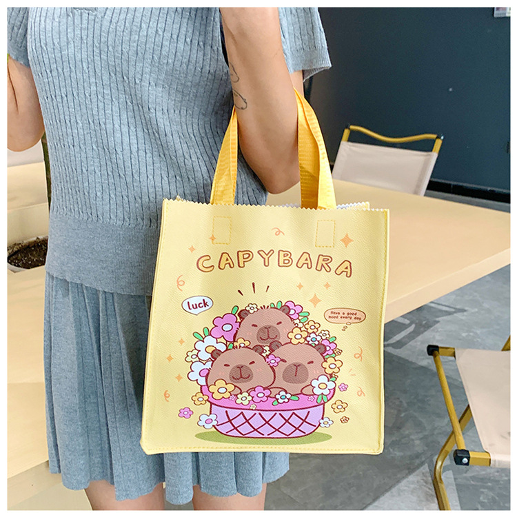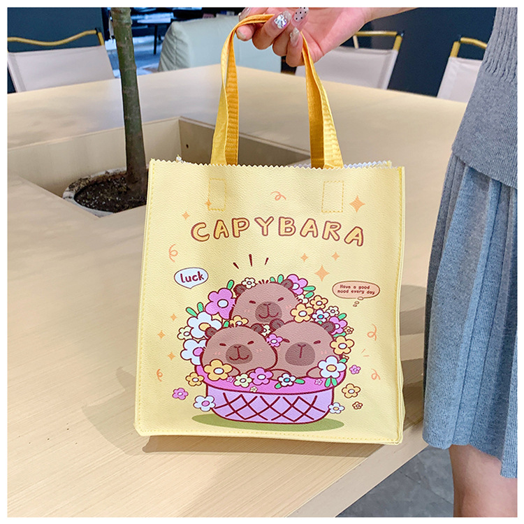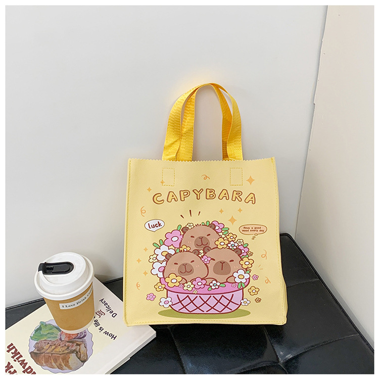 여성을위한 만화 Kapibara 핸드백 가방 2025 새로운 귀여운 도시락 가방 학생 손으로 들고 다니는 책 가방 보관 가방