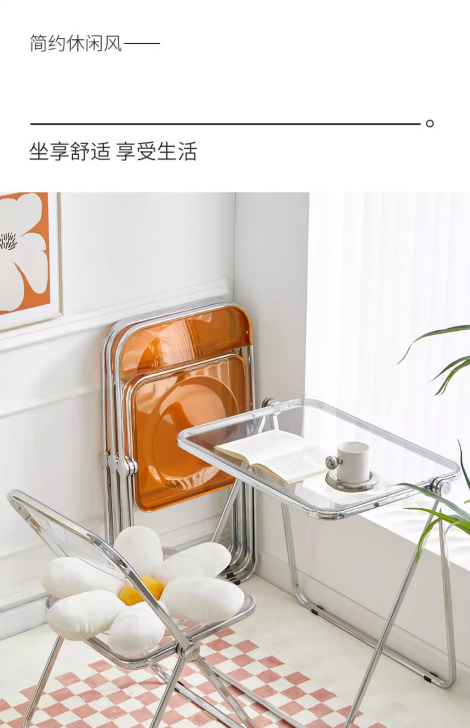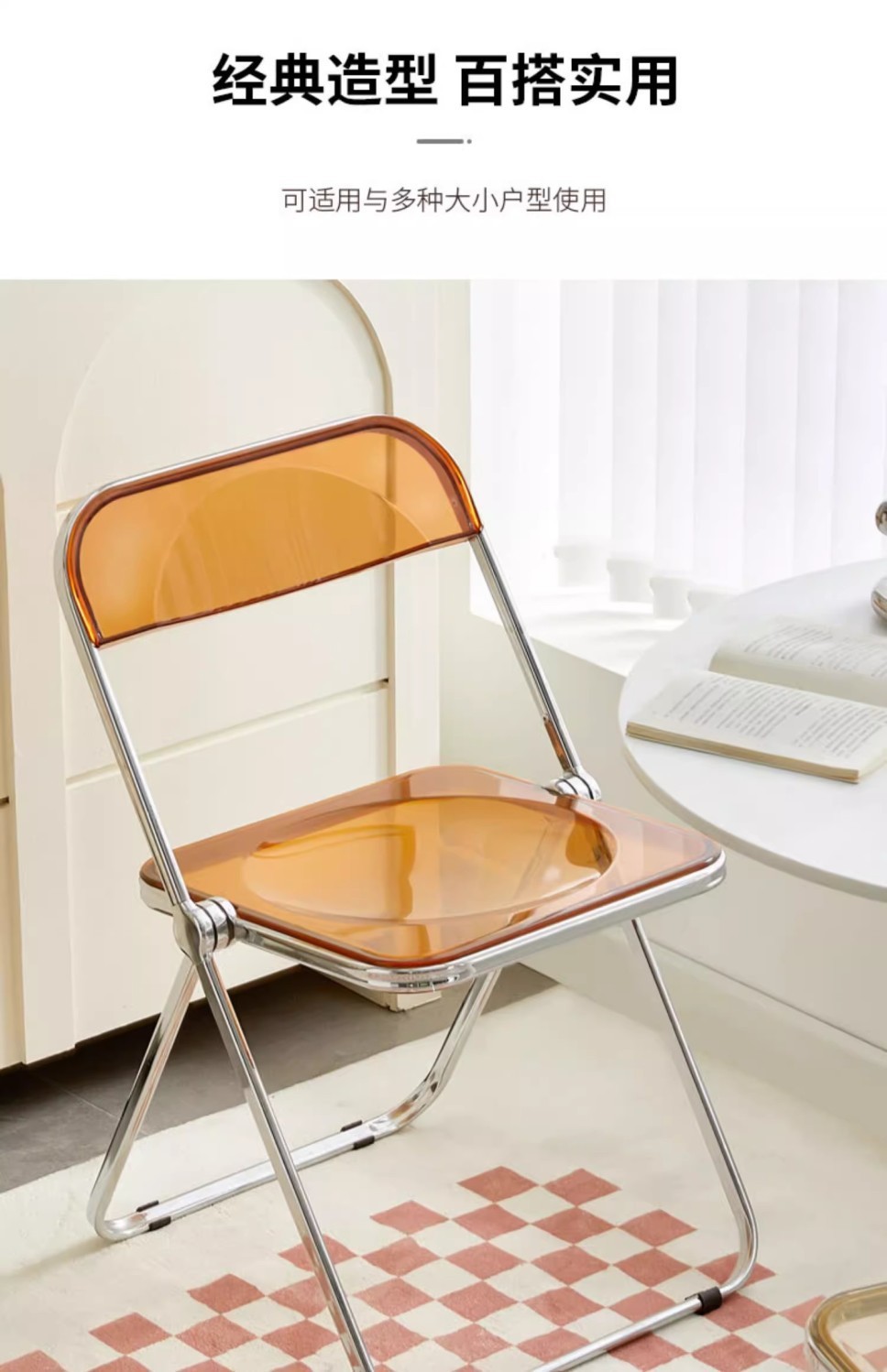 • 호박색 투명 접이식 의자 [업그레이드된 PC 소재]
