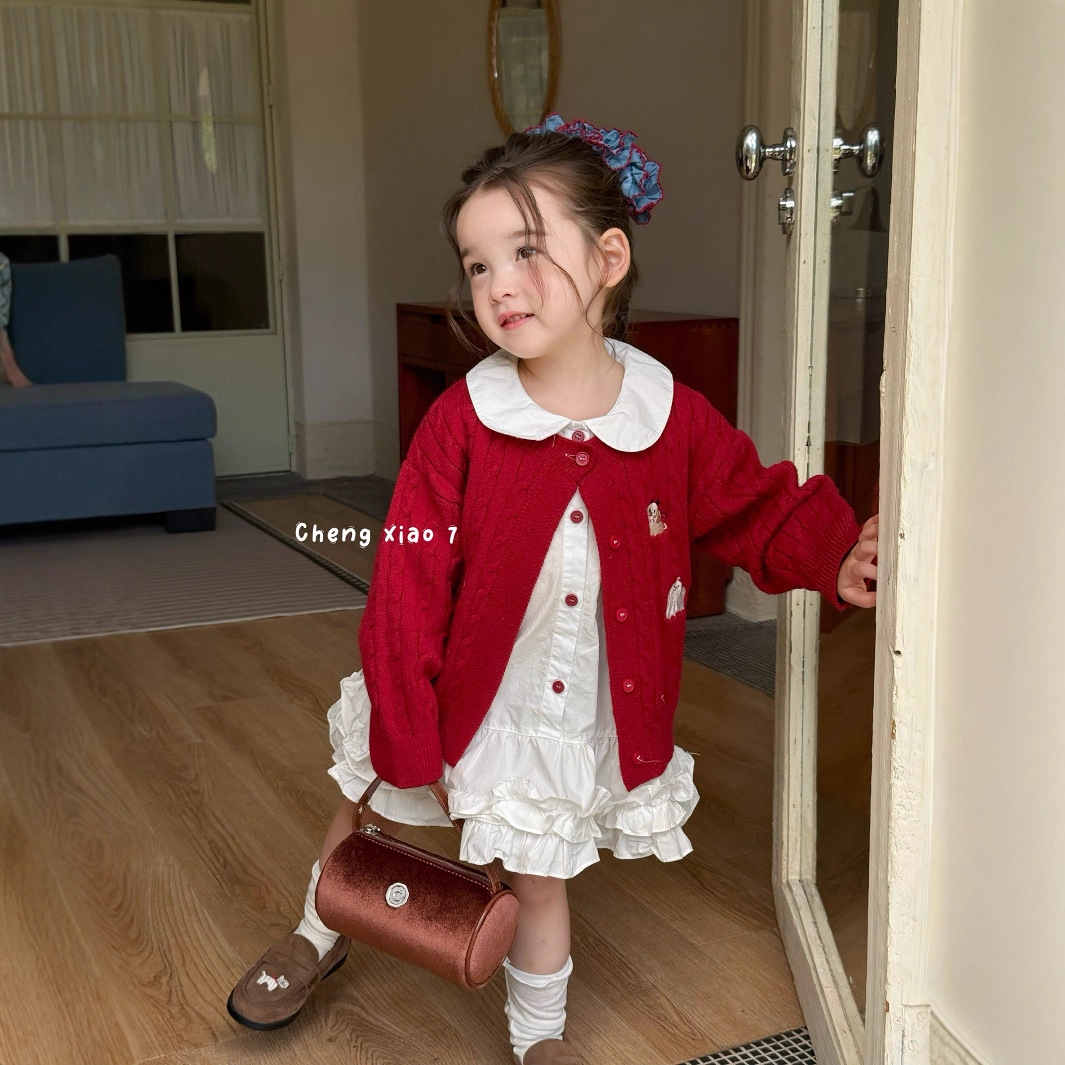 여자 가을 숲 스타일 니트 카디건 봄, 가을 2025 새로운 스타일 어린이 스타일 아기 소녀 가을 스웨터 재킷스토어 가기