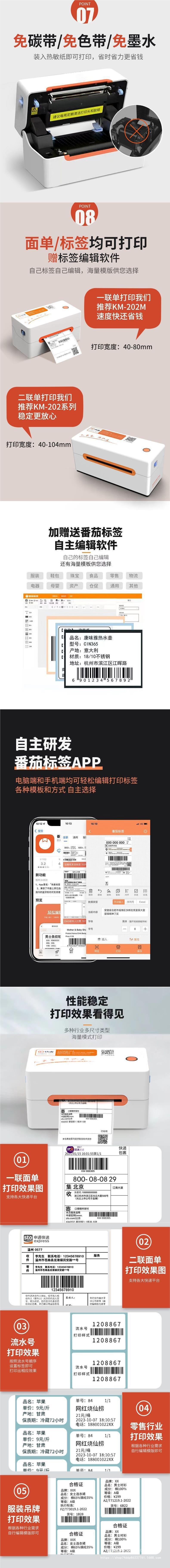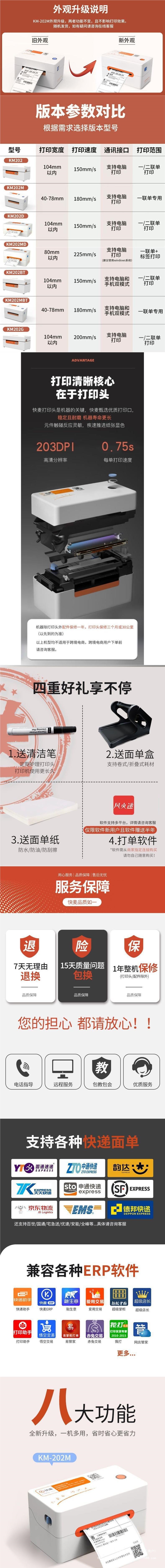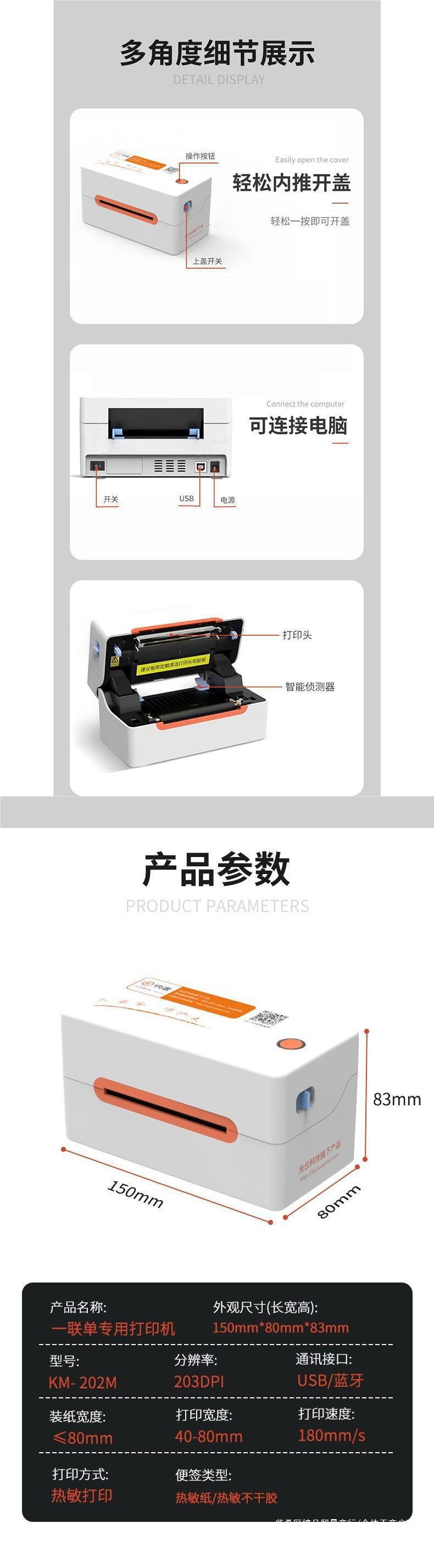 Kuaimai KM202M 특급 주문 프린터 블루투스 라벨 프린터 일회용 전자 주문 특급 프린터스토어 가기