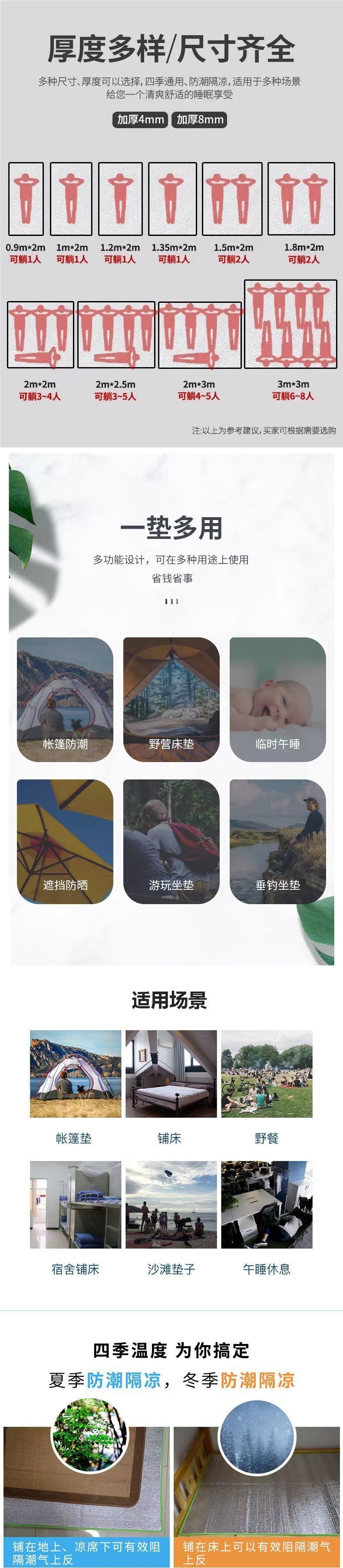 방습 매트 두꺼운 야외 휴대용 방수 잔디 피크닉 홈 텐트 알루미늄 필름 싱글 기숙사 슬리핑 패드