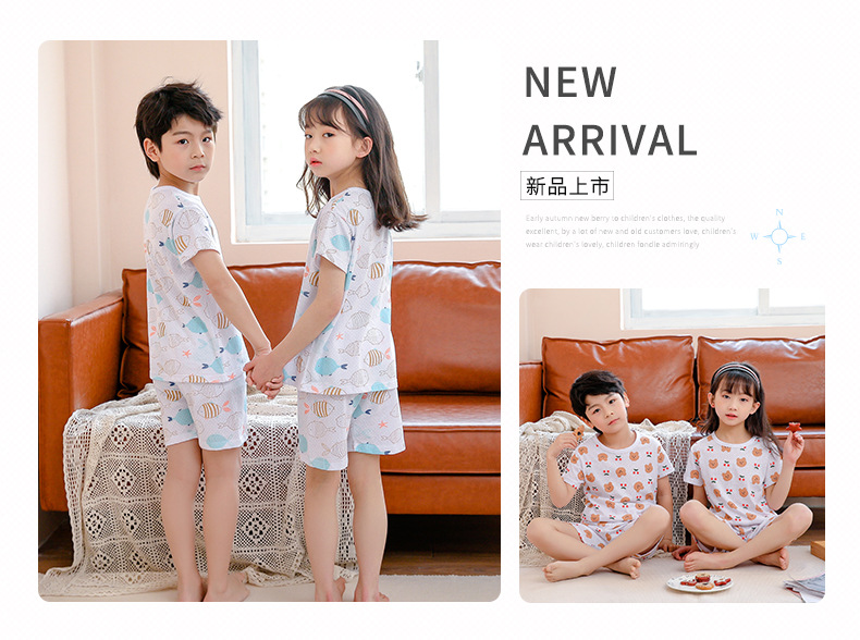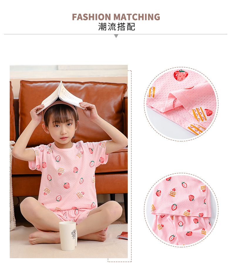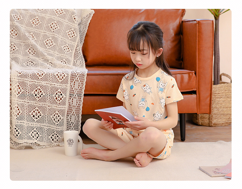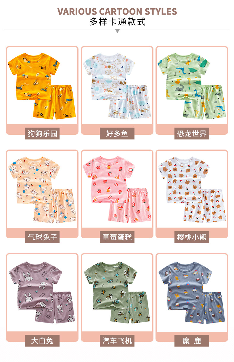 여름 홈 만화 메쉬 어린이 잠옷 호흡 면화 소녀 반팔 반바지 정장 소년 통기성 에어컨 옷스토어 가기