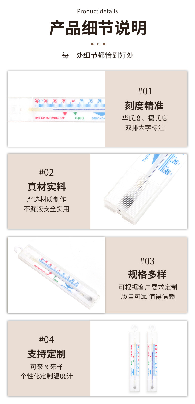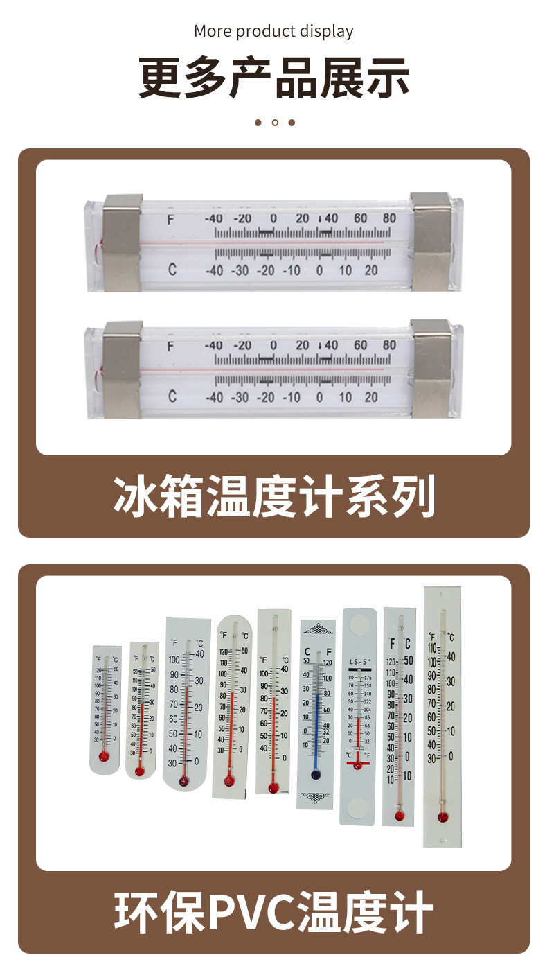 我司在温度计行业已经有17年的生产加工研发经验,并且支持OEM贴牌代加工,换包装等服务,欢迎各大新老客户莅临参观、指导和业务洽谈。