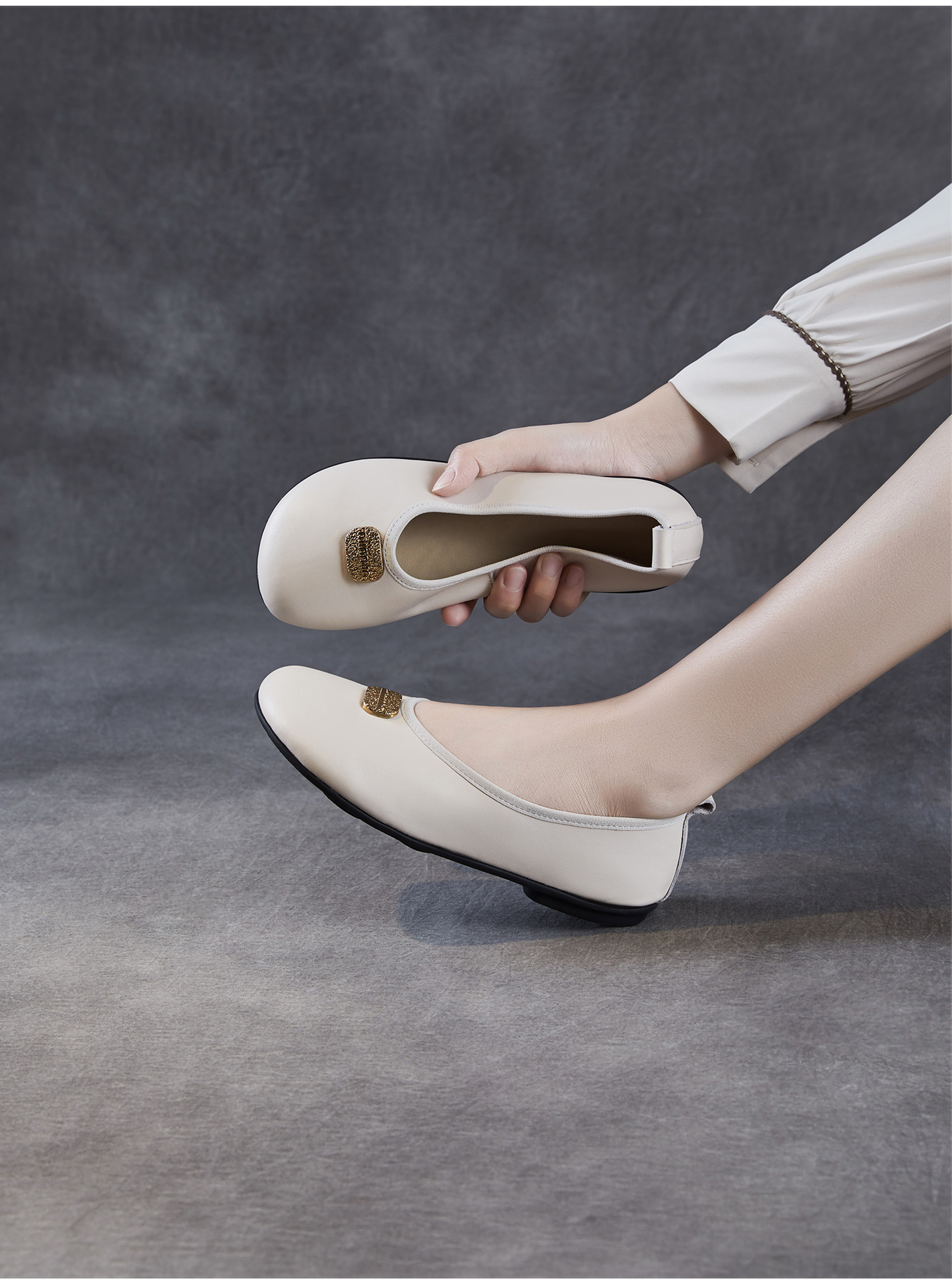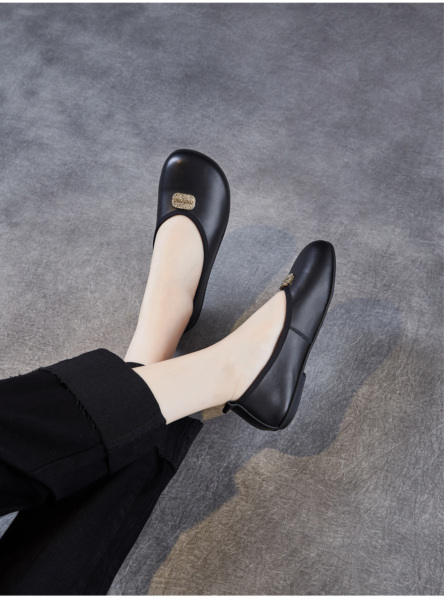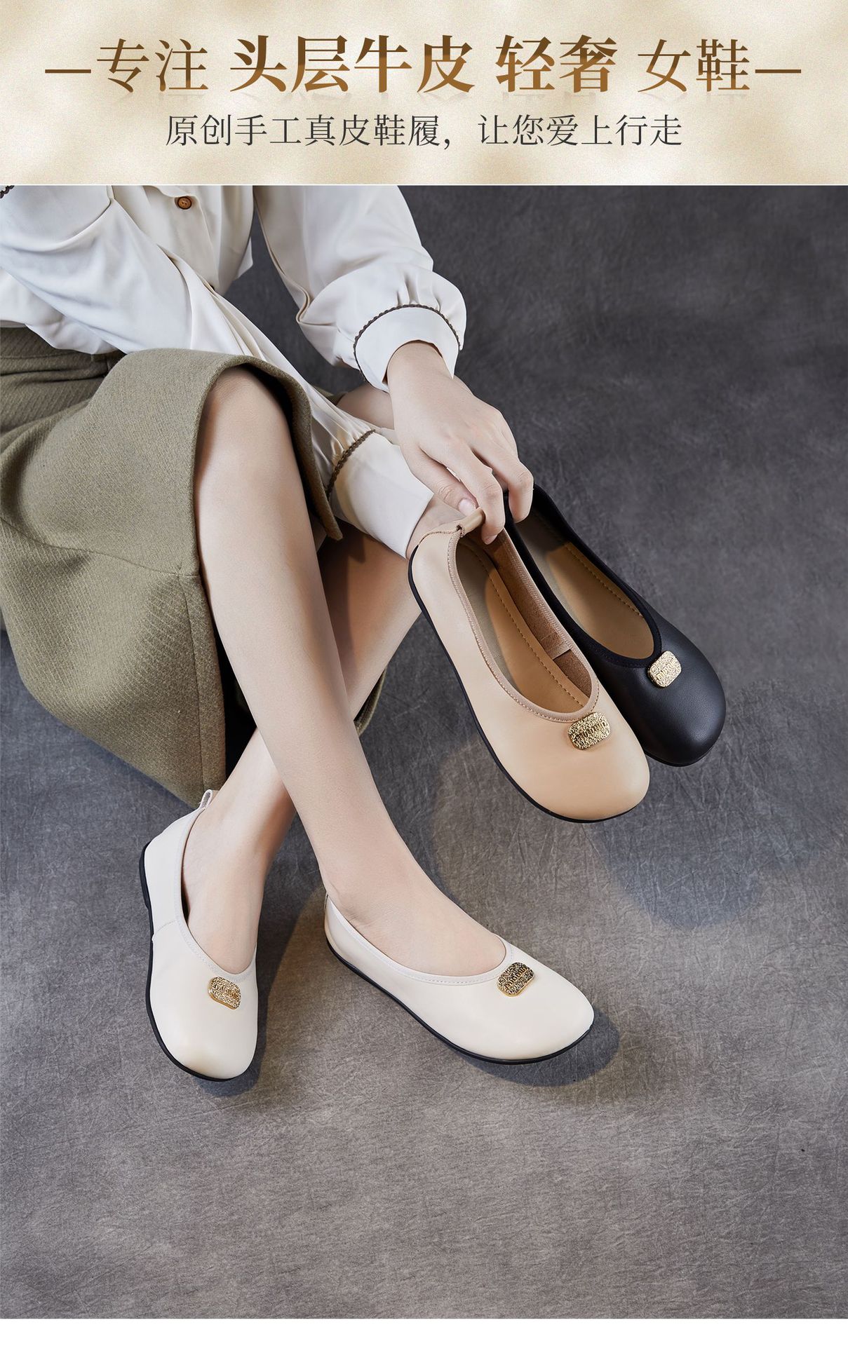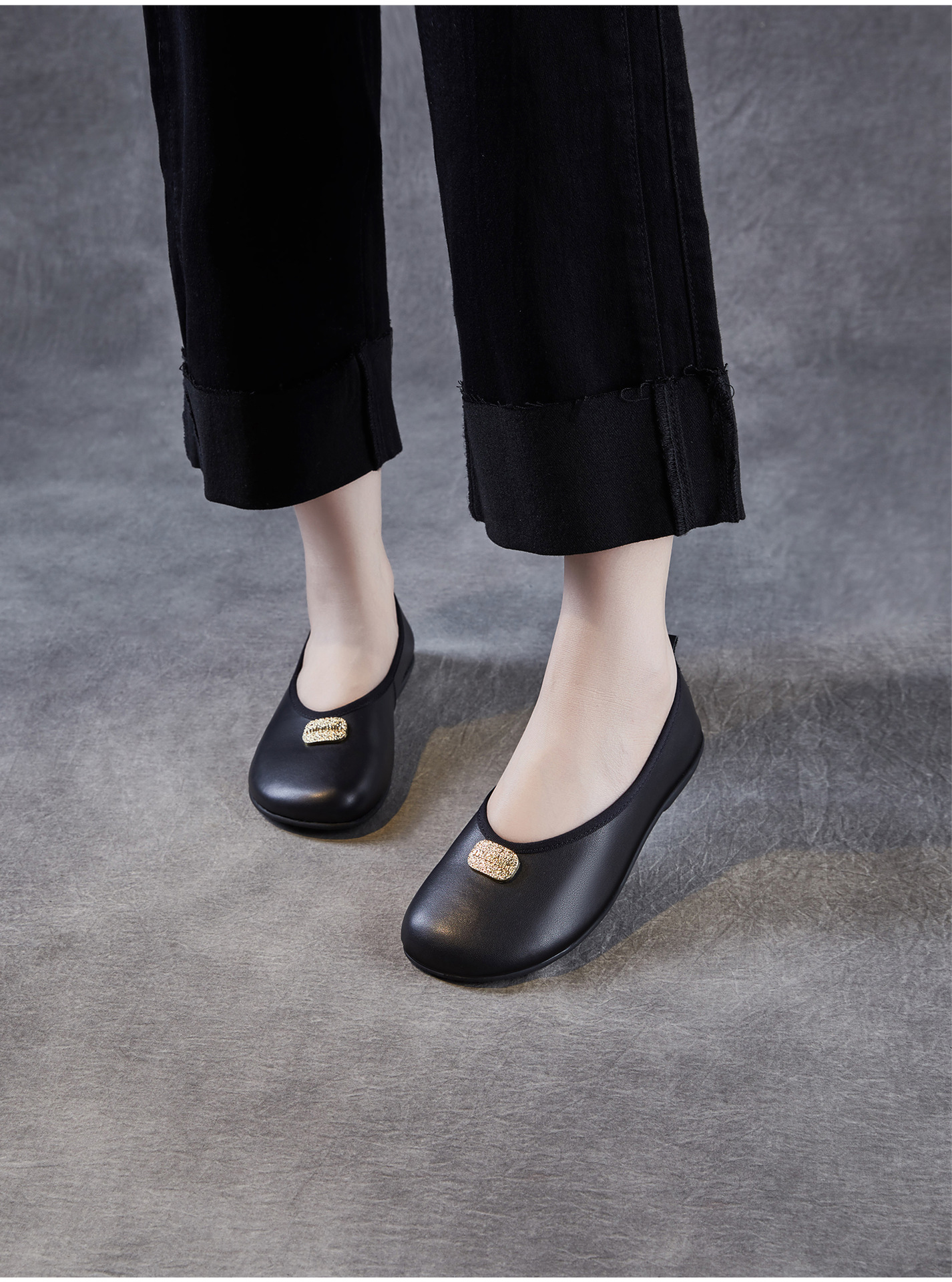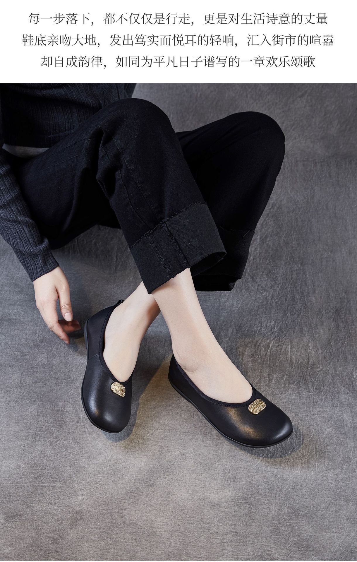 포레스트 스타일 문예 핸드메이드 천연가죽 플랫 페어리 슈즈, 편안하고 우아한 메탈 슬립온 소가죽 펌프스와 부드러운 밑창 슈즈스토어 가기