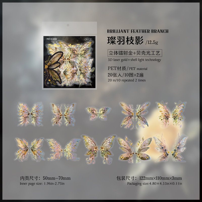 Mo Mo Lingkong Crystal Wing 시리즈 PET 스티커 팩 20 나비 테마 핸드북 장식 재료 스티커 6 스타일