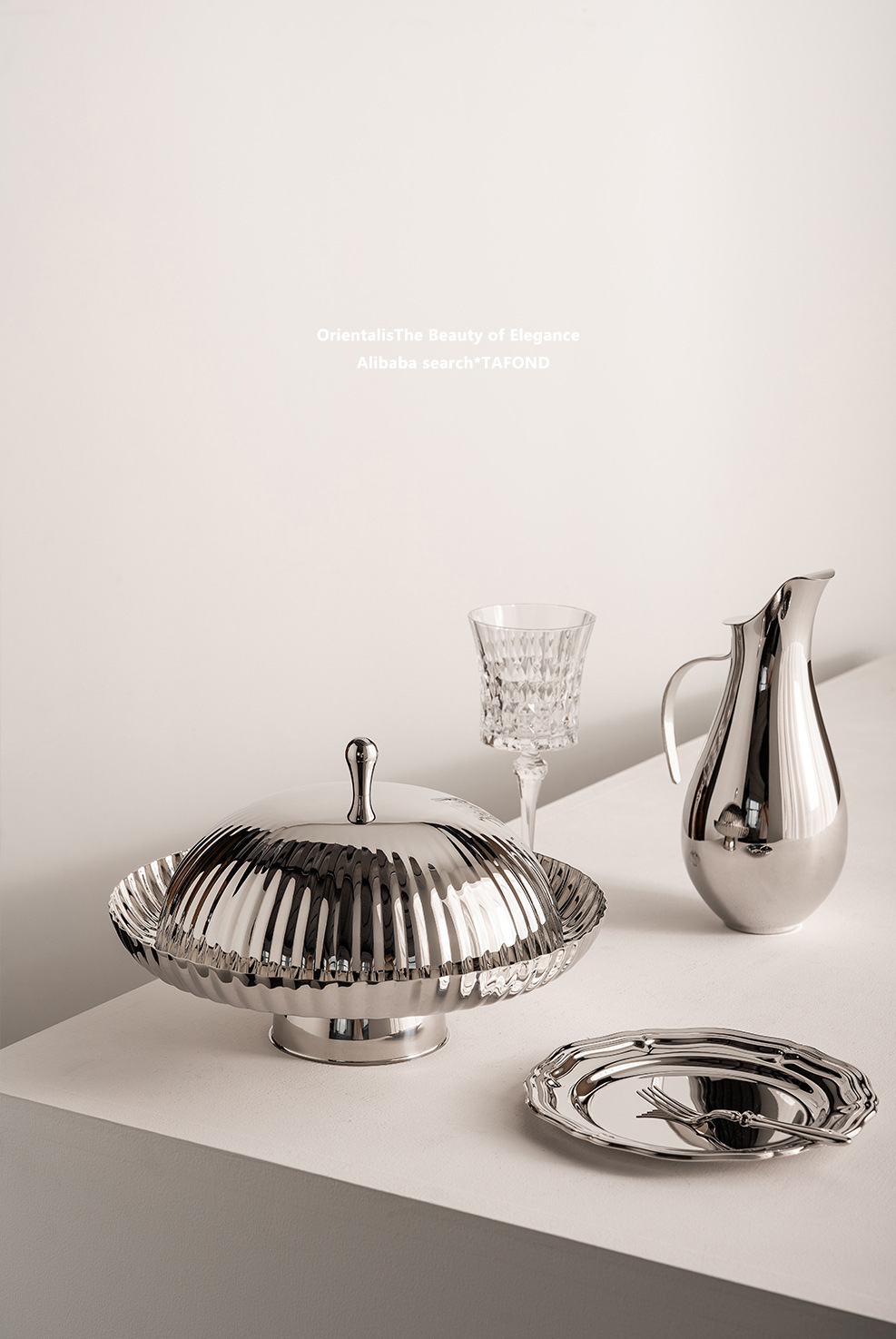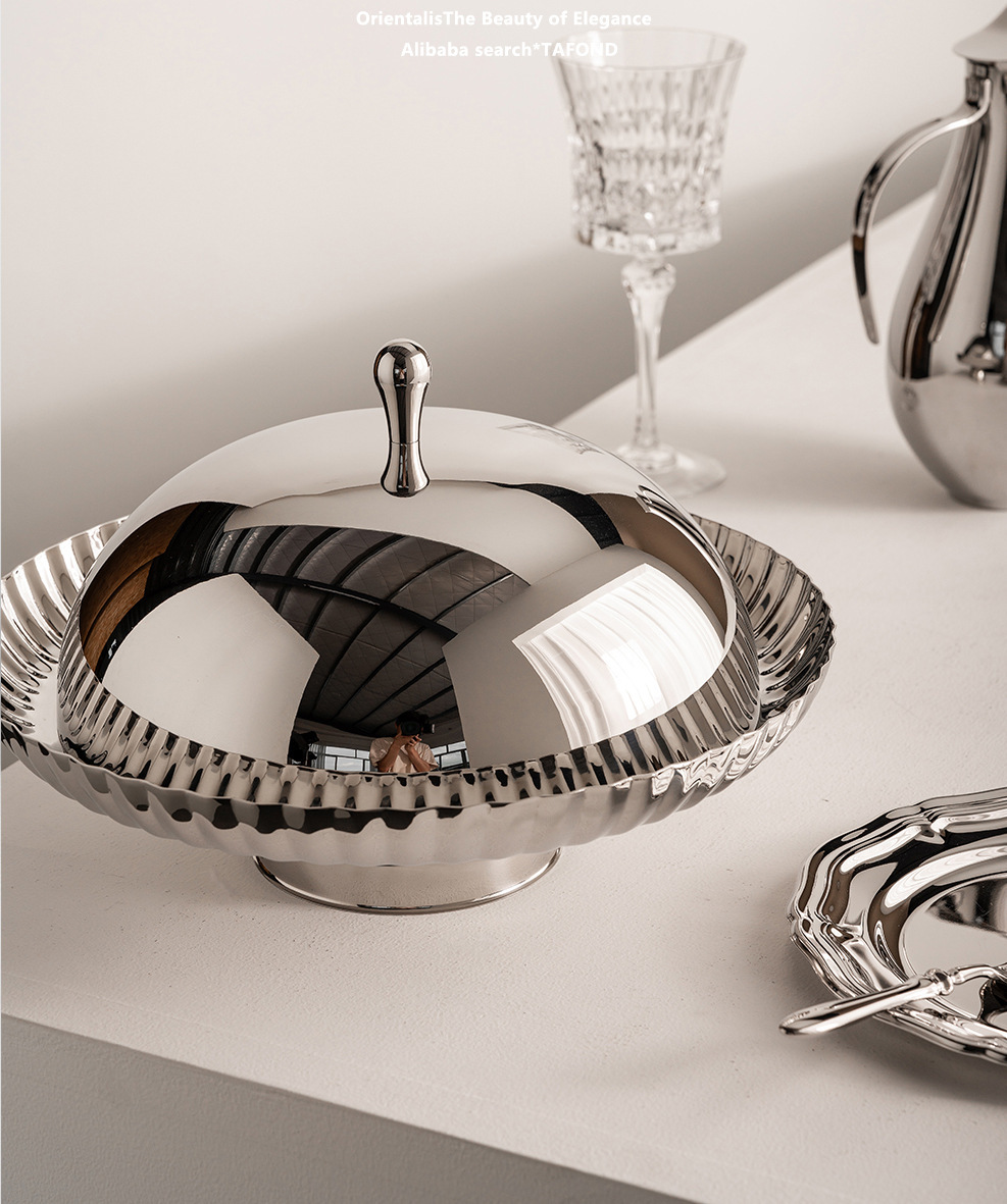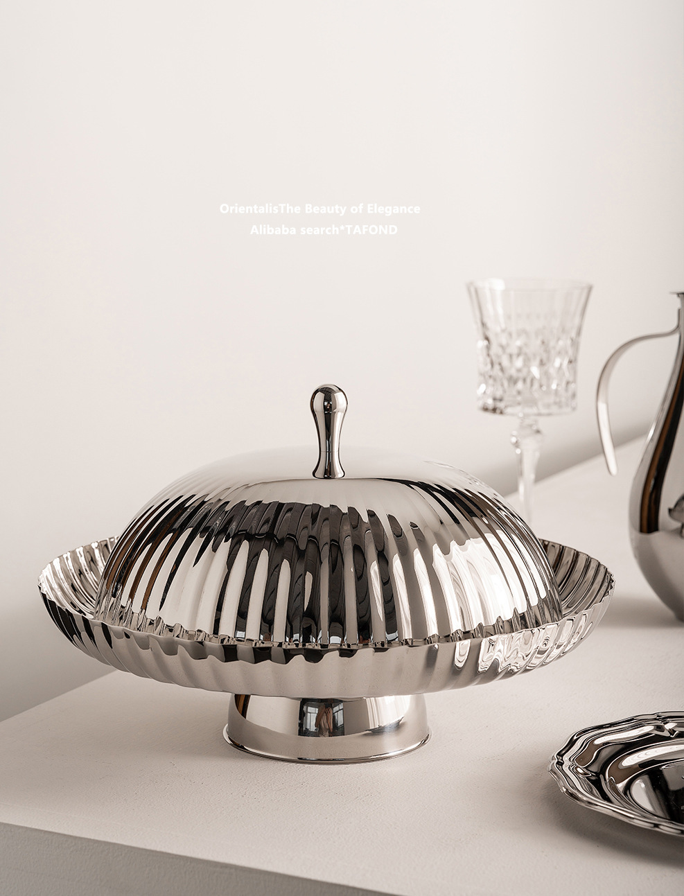 뚜껑이 있는 유럽 스타일의 스테인레스 스틸 디너 트레이, 과일 빵 스낵 케이크 트레이, 방진 과일 트레이, 서빙 트레이 장식품
