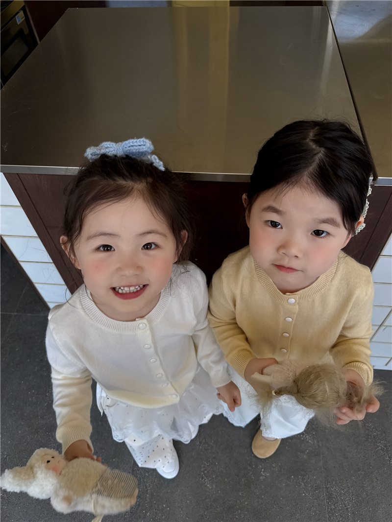 Sweet Tea Mom Girls 2025 가을, 겨울 새로운 부드러운 스웨터 카디건 아기 유치원 다목적 스웨터 아동상의