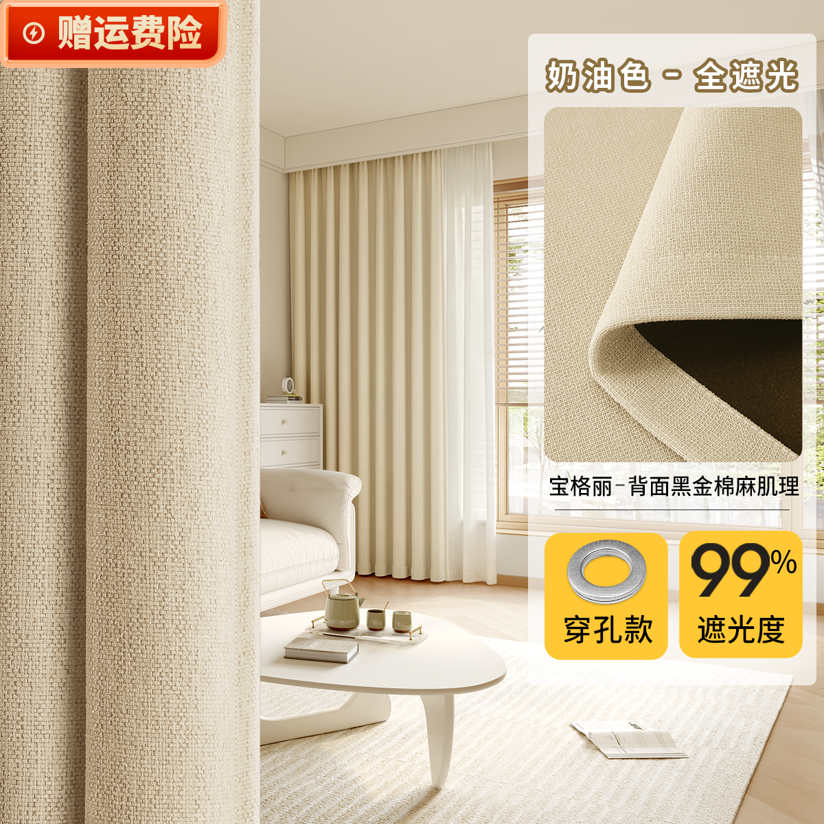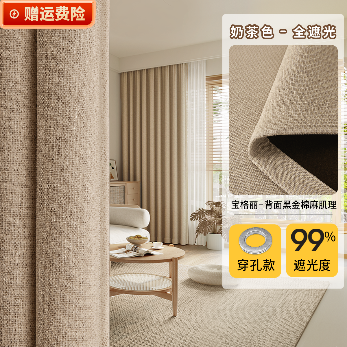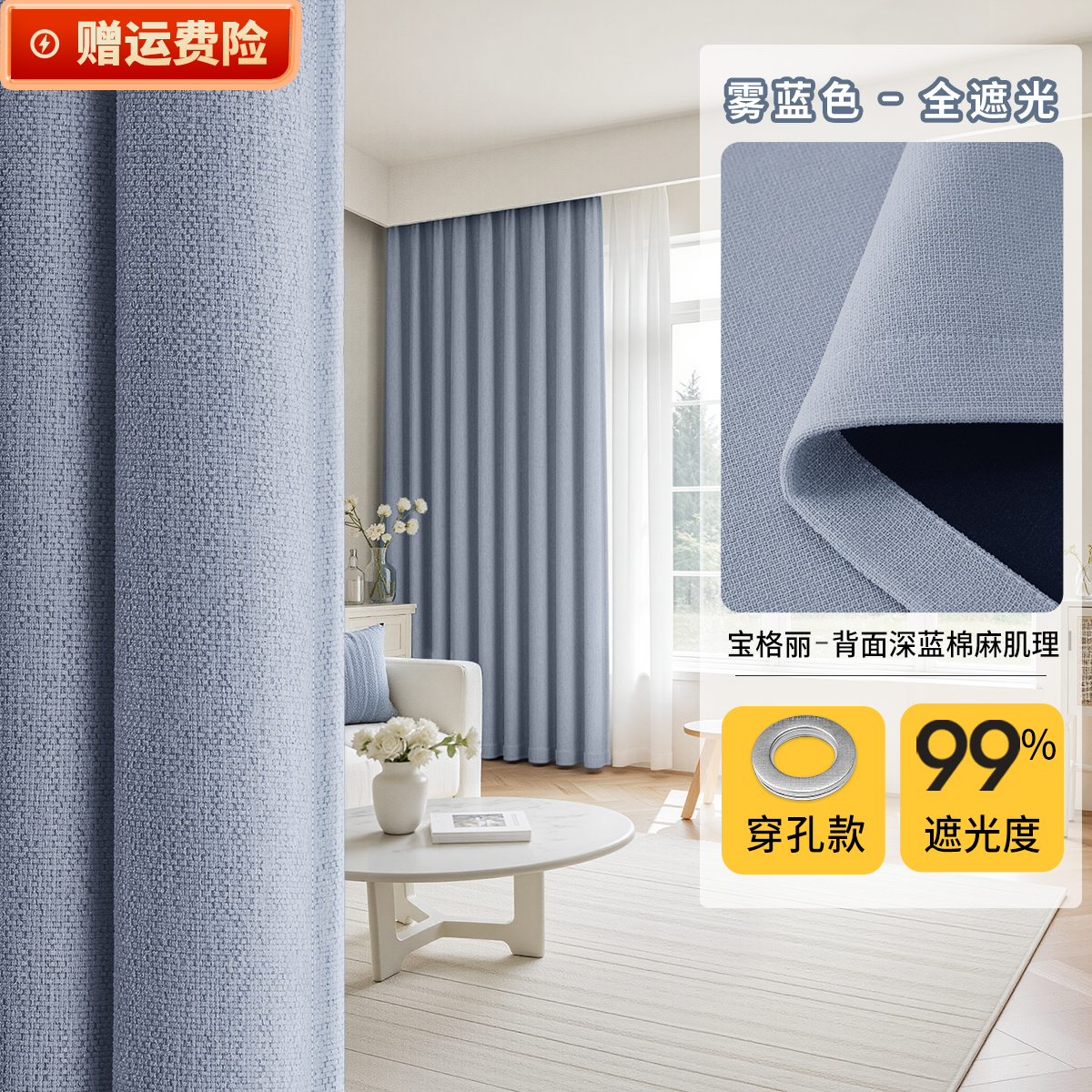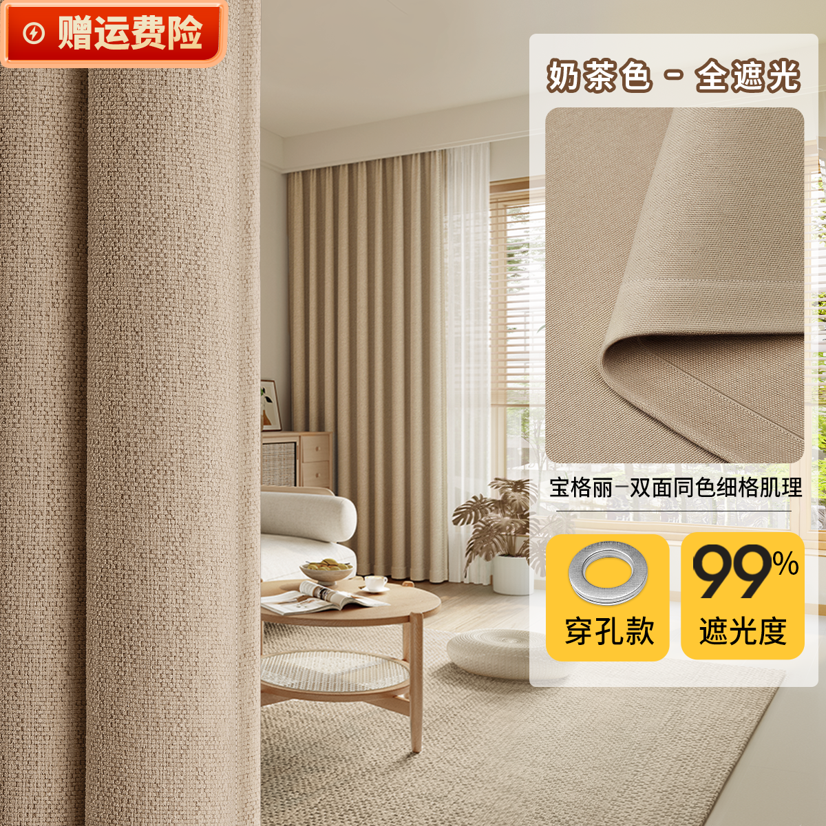 커튼 완전 차광 침실 강력한 방음 펀치 프리 설치 막대 2025 새로운 스타일의 자외선 차단제 차양 천스토어 가기