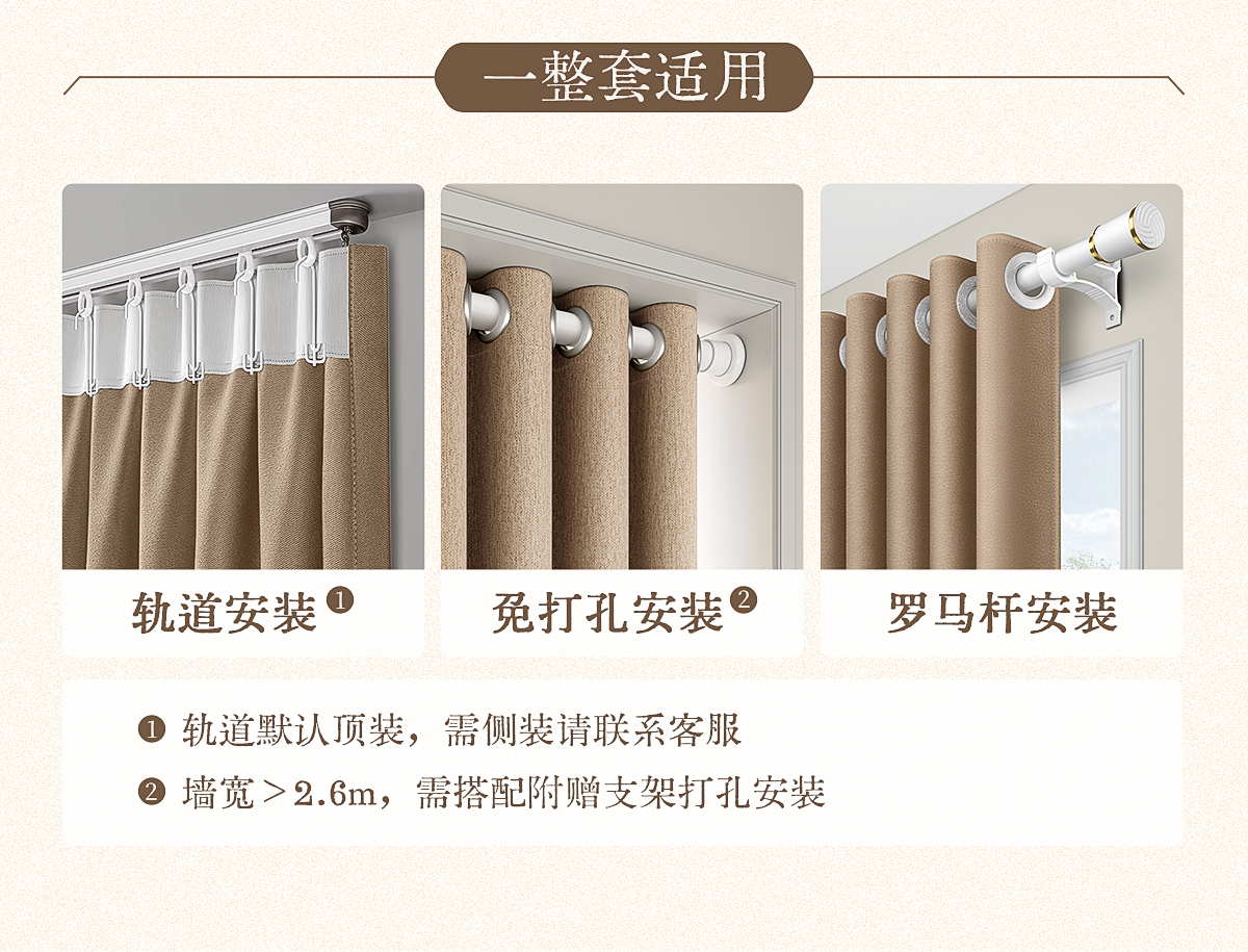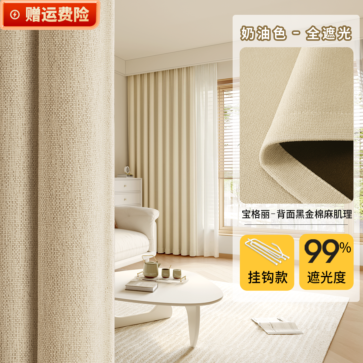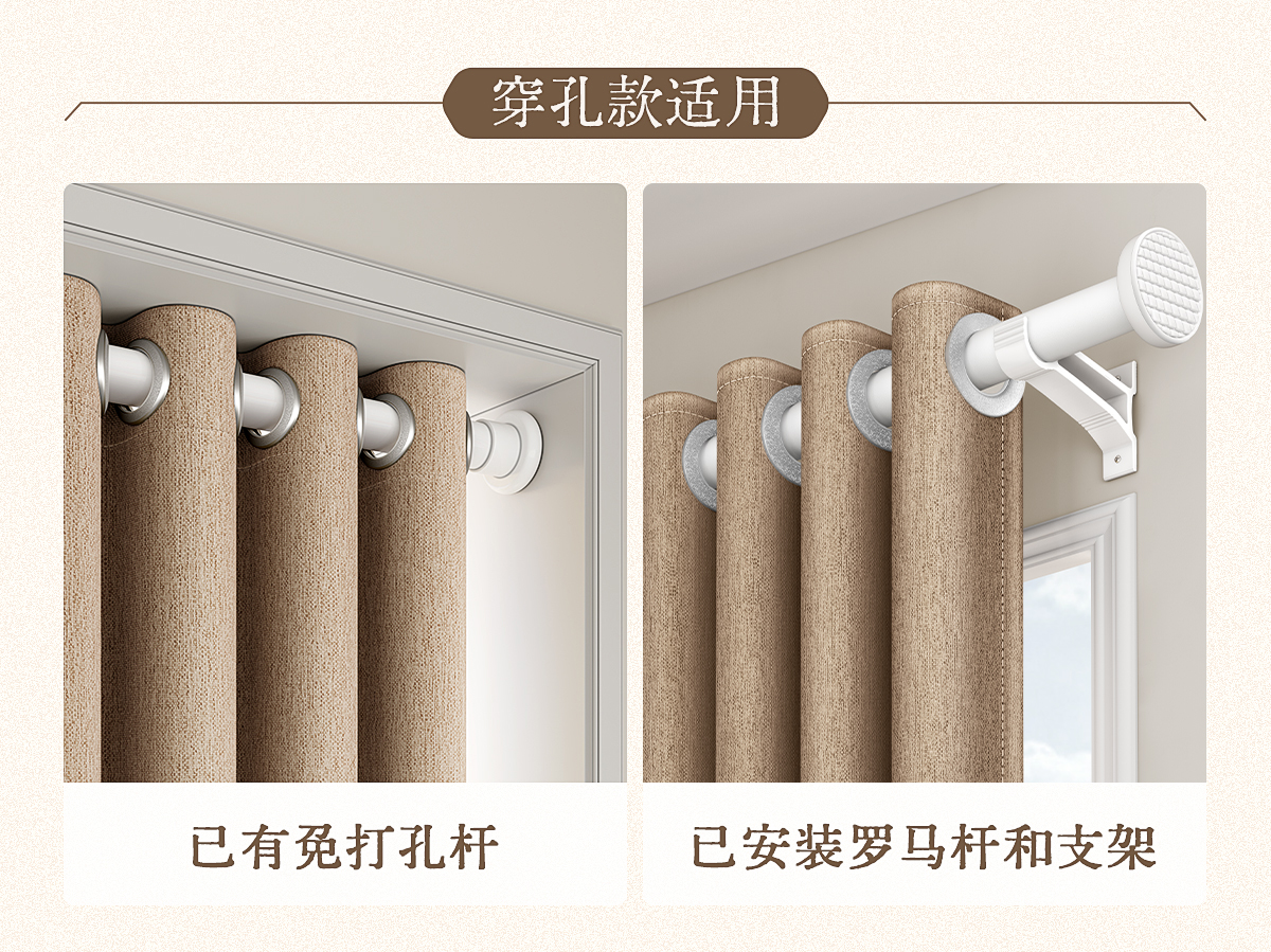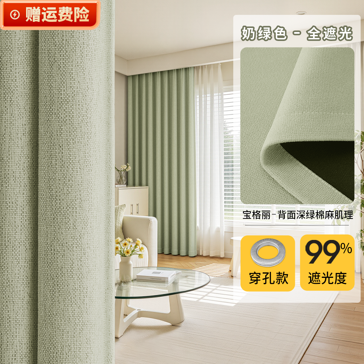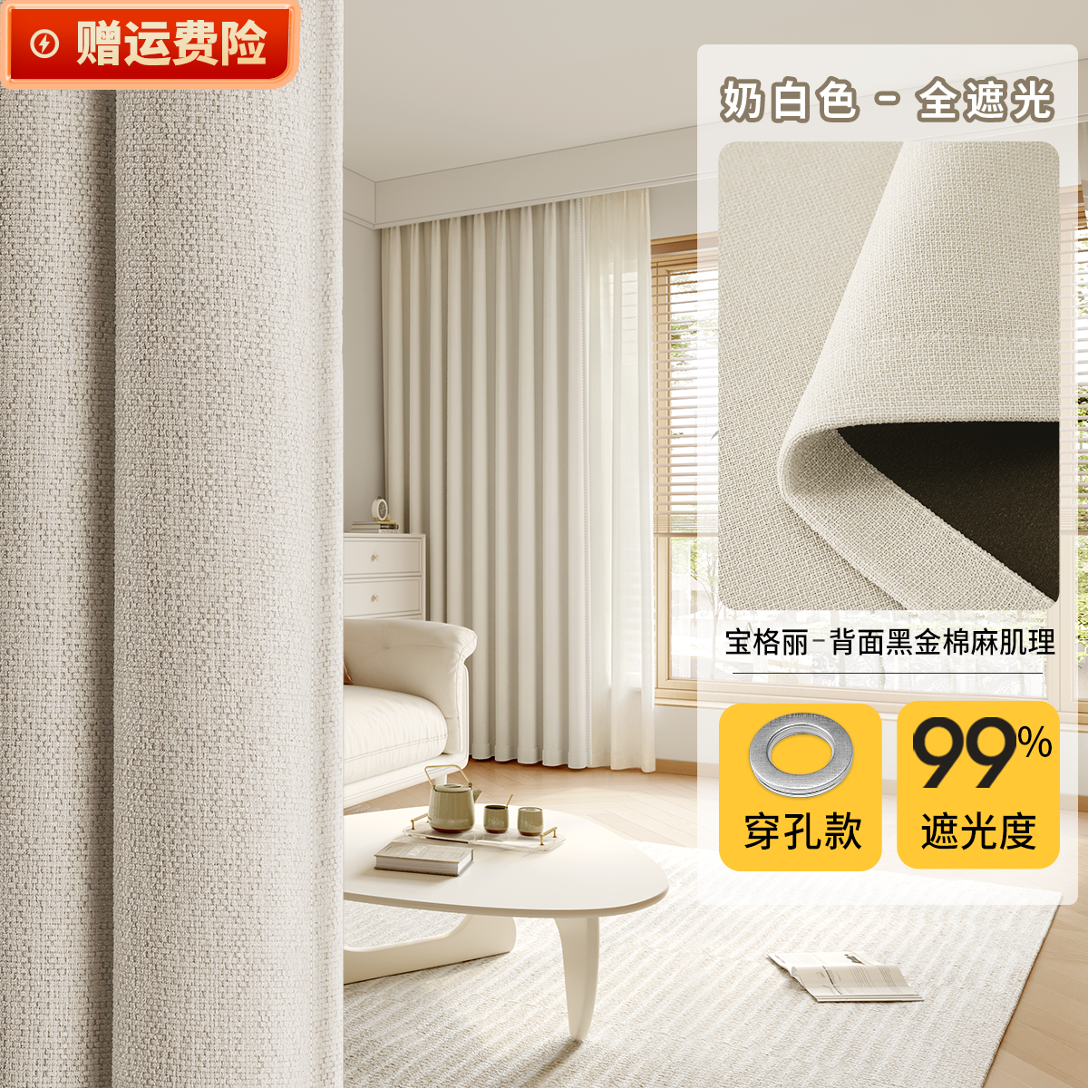 커튼 완전 차광 침실 강력한 방음 펀치 프리 설치 막대 2025 새로운 스타일의 자외선 차단제 차양 천스토어 가기