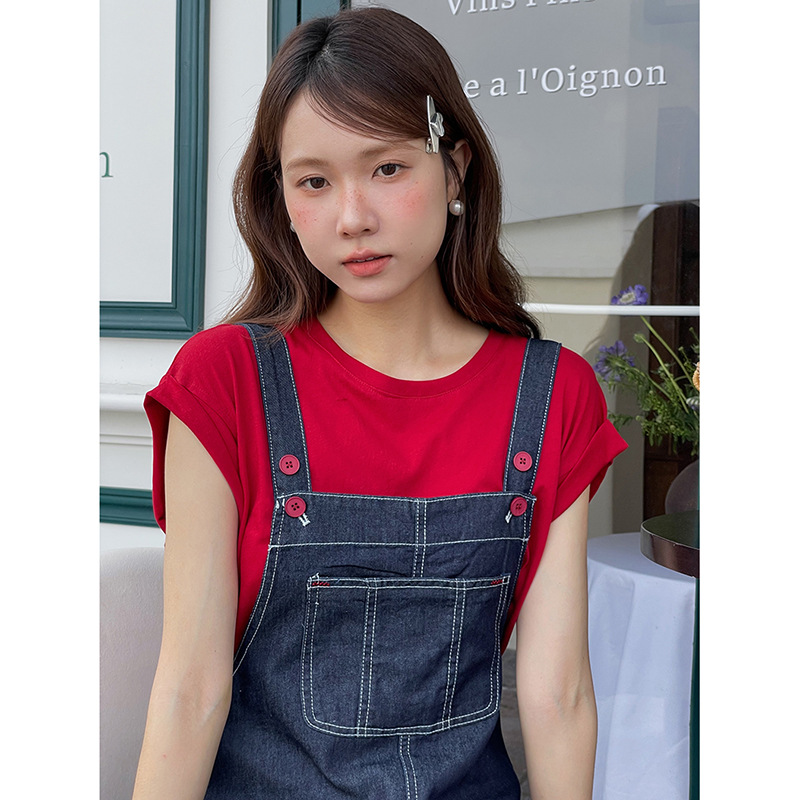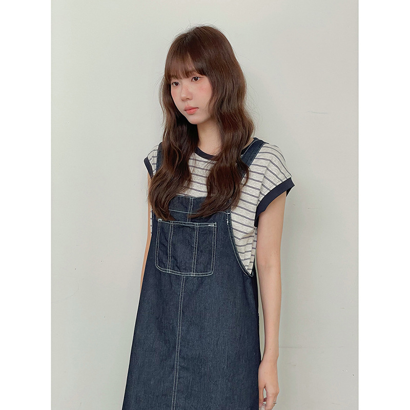 [여름마리오] 한국 데님조끼 원피스 여성+반팔티셔츠 투피스 N099C