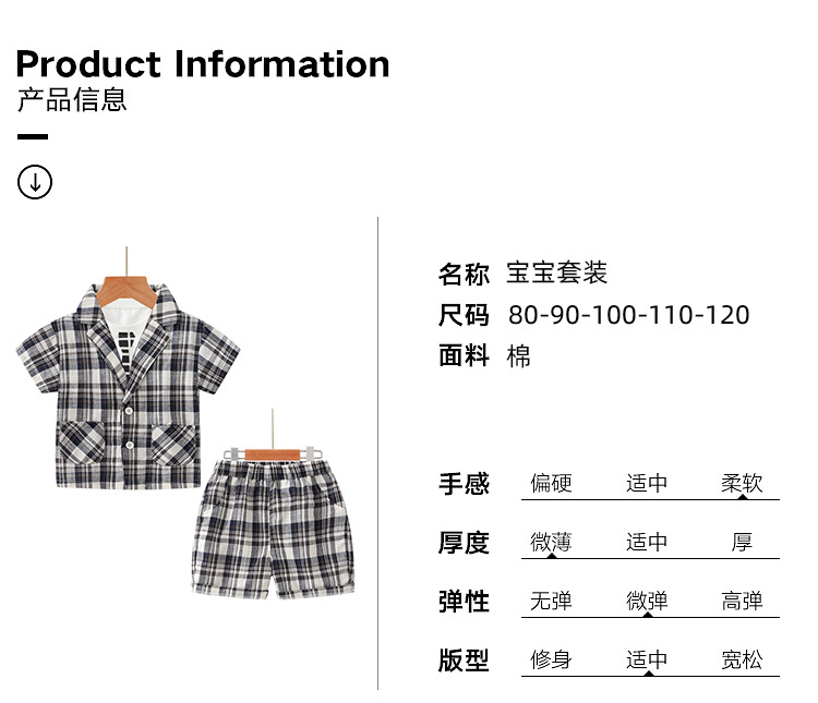 소년 반팔 양복, 여름 잘 생긴 아기 작은 양복, 어린이 스타일 어린이 격자 무늬 양복, 여름 아동복스토어 가기