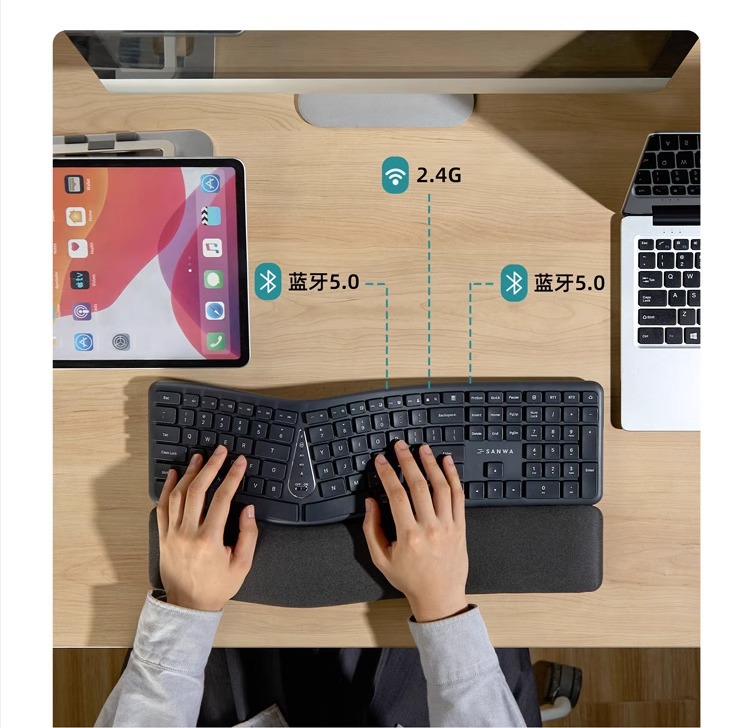 일본 SANWA 인체 공학적 키보드 손목 받침대가있는 무선 블루투스 게임 사무실 홈 충전 타이핑 주변 장치